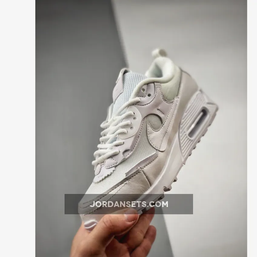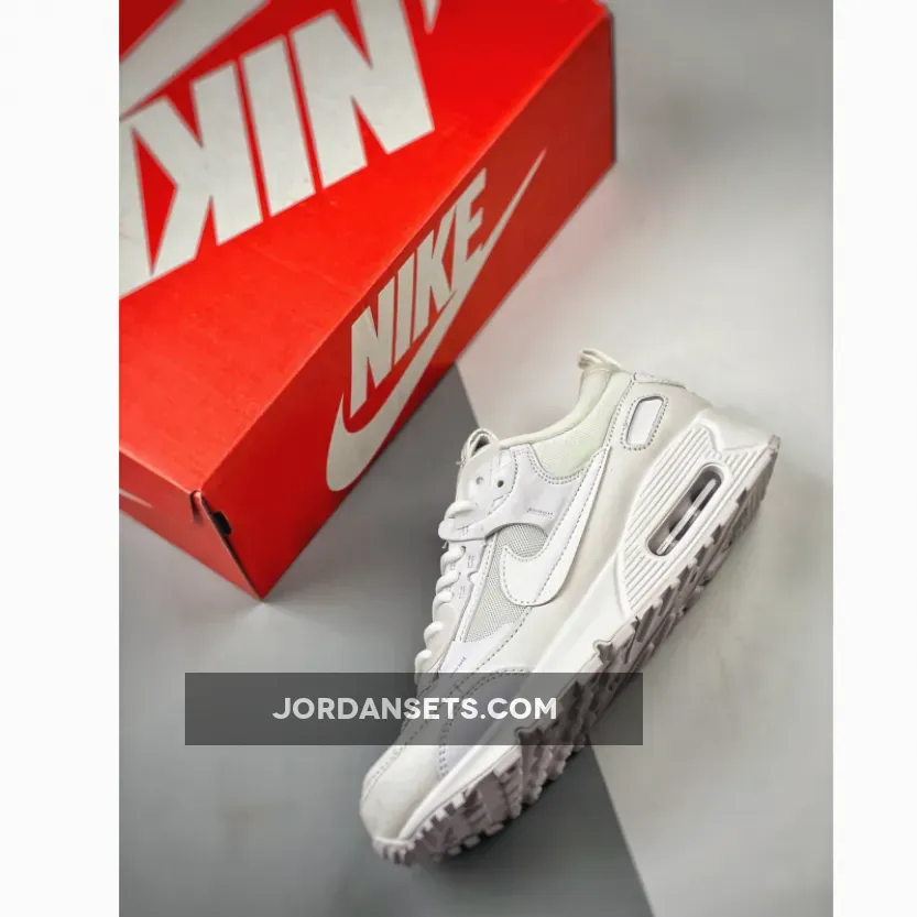 This offering of the Nike Air Max 90 comes with a layered aesthetic constructed in a mix of mesh and leather materials. Perfect for the warmer months, the shoe arrives in a “Triple White” color blocking.
