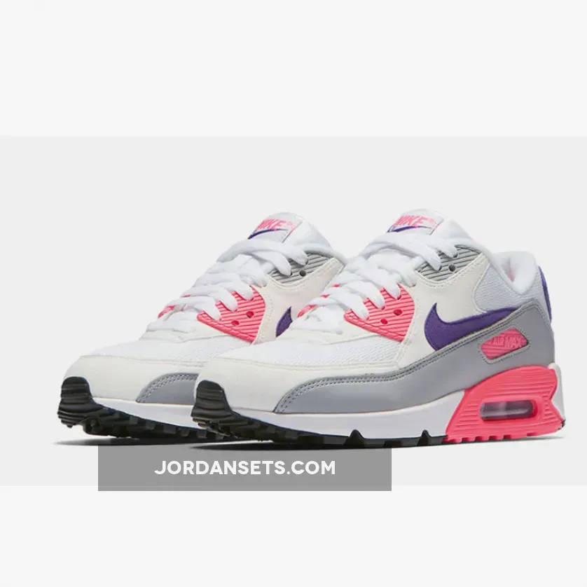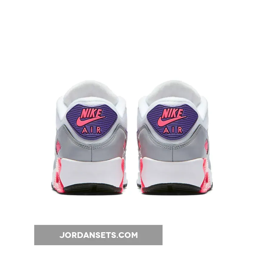A summer 2018 iteration of the classic AM 90, the Nike Wmns Air Max 90 ‘Laser Pink’ sports a white mesh upper with plenty of vibrant color blocking in Wolf Grey, Laser Pink and Court Purple for a dynamic take on the silhouette.