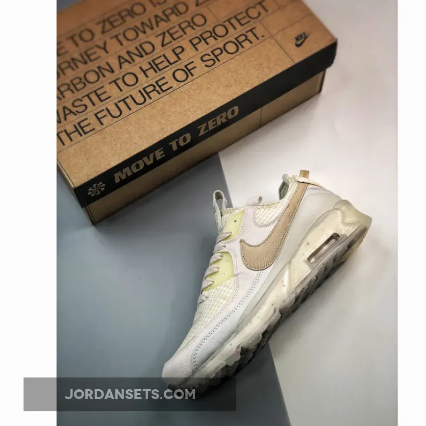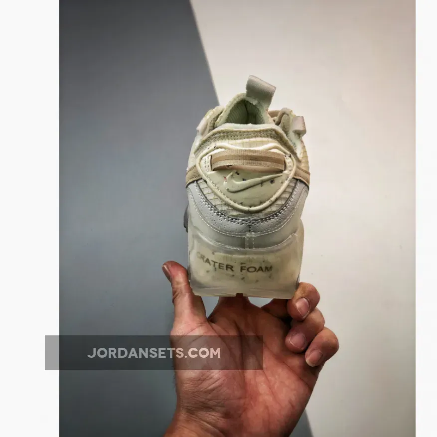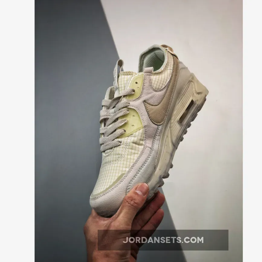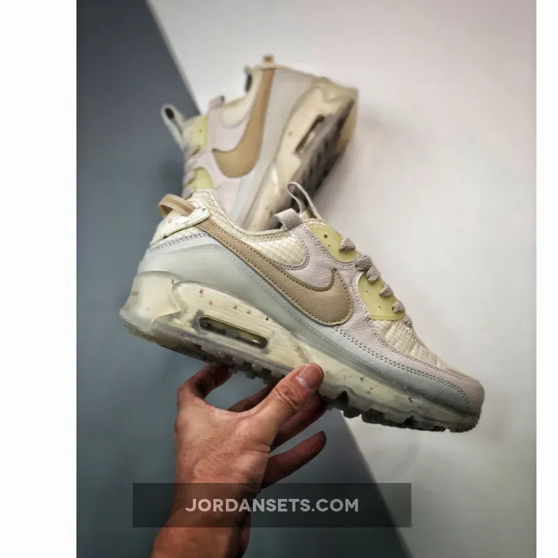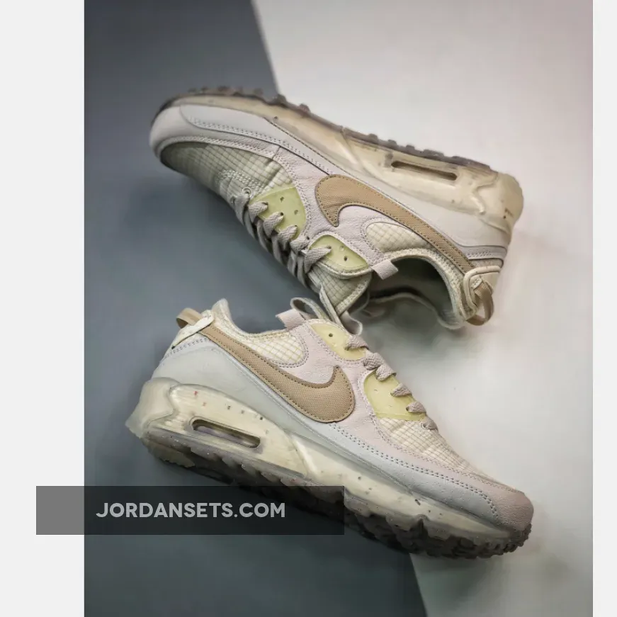 The Nike women’s Air Max Terrascape 90 ‘Light Bone’ applies a neutral monochrome finish to a lifestyle runner inspired by Tinker Hatfield’s 1990 original. The updated build, made with at least 20% recycled content by weight, features a lightweight upper constructed from off-white ripstop textile. Details include translucent TPU eyelets, a webbing pull tab affixed to the heel, and an oversized Swoosh stitched atop synthetic suede overlays. Lightweight cushioning arrives via a Crater Foam midsole, wrapped in a transparent cage and reinforced by a rubber outsole made in part with Nike Grind.