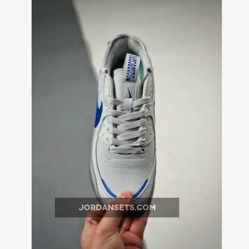 Like other Terrascape offerings, This edition of the Nike Air Max 90 comes constructed with recycled fabrics and materials. Canvas, plastic, and other materials across the top-half enjoy a greyscale color palette that’s interrupted by vibrant blue swoosh logos at the sides. Multi-color components on the spine denote the sneaker’s recycled nature, but not as much as the midsole and outsole combination. Other details includes “Terrascape” branding on the tongue pull tabs and insoles atop a semi-translucent Crater Foam midsole and Nike Grind speckled outsole. The Air Max offering contributes to the brand’s eco-conscious efforts with a look inspired by the trails.