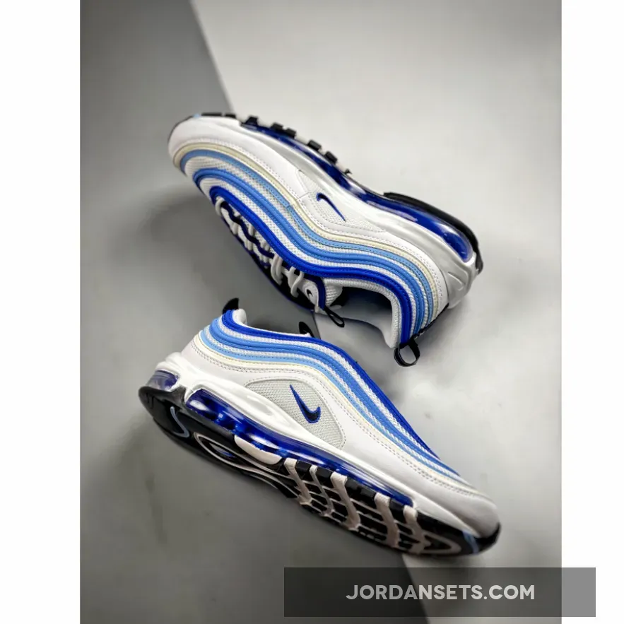 Flaunting a clean and vibrant aesthetic, the low-top comes boasts a combination of mesh and leather for its composition draped mostly in white, while varying blue tones adorn the signature wavy overlay, branded areas, and piping on the tongue. Finally, 3M reflective accents, a white midsole and white/black rubber outsole round out the design.