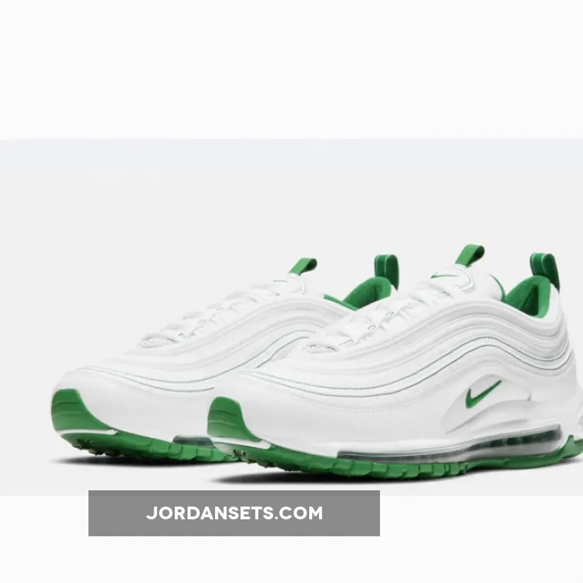 Dressed in a White and Pine Green color scheme. This Nike Air Max 97 features an all-White mesh base with leather overlays.