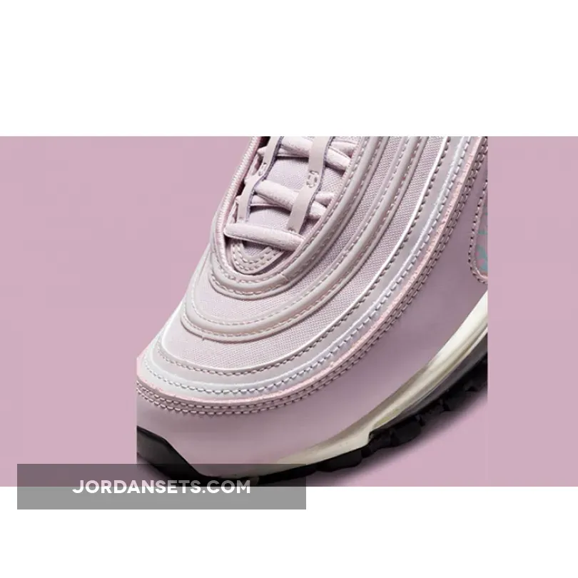 This Nike Air Max 97 Pink Iridescent Camo sneaker still features the original ripple design inspired by Japanese bullet trains, which gave the message of pushing one’s style at full speed. It also features 3M reflective overlays.