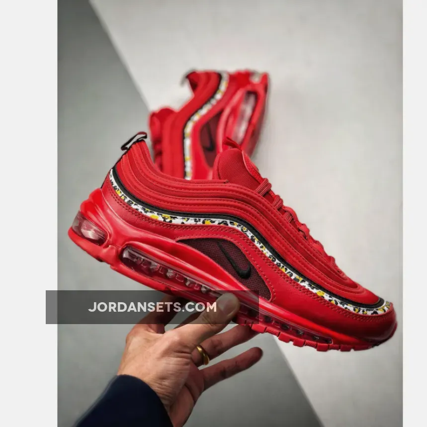 Inspired by the famous Japanese bullet trains, the Nike Air Max 97 Red Leopard features a mesh and leather upper decked out in a red hot shade, which is further accented with a leopard print. The predominantly red colourway is completed with black branding, with branding adorning the side panels, tongue, and signature sole unit.