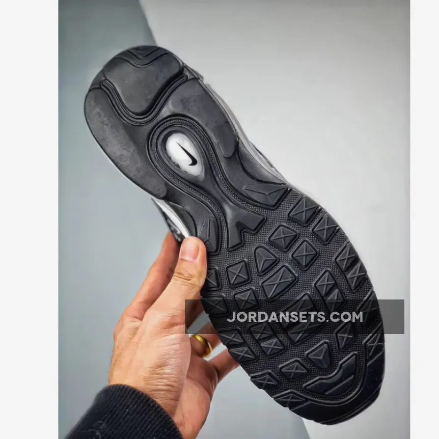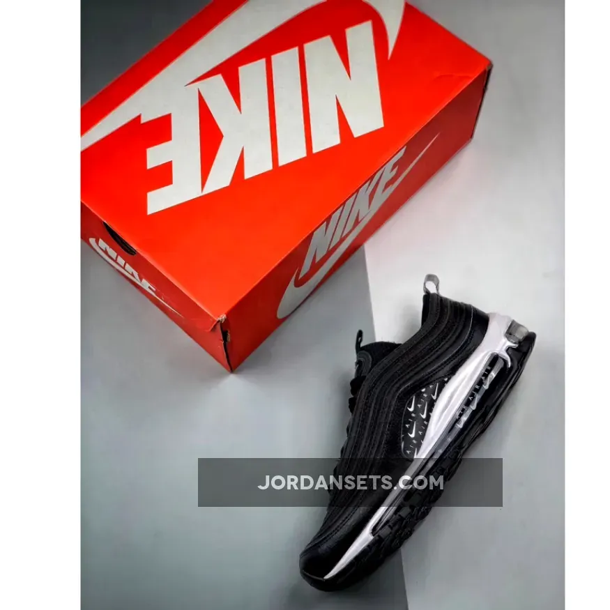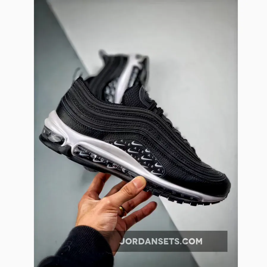 Dressed in a simple Black and White color scheme. This Nike Air Max 97 feature a Black mesh and leather upper atop a White midsole. But highlighting the shoe are repeating “Air” and “Swoosh” logos on the lower midfoot as well as on the Air pocket. A White heel tab also gives this release an alternate look.