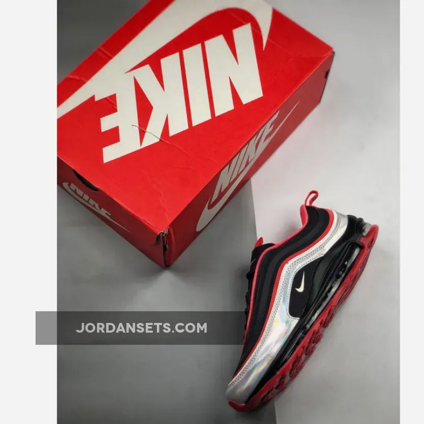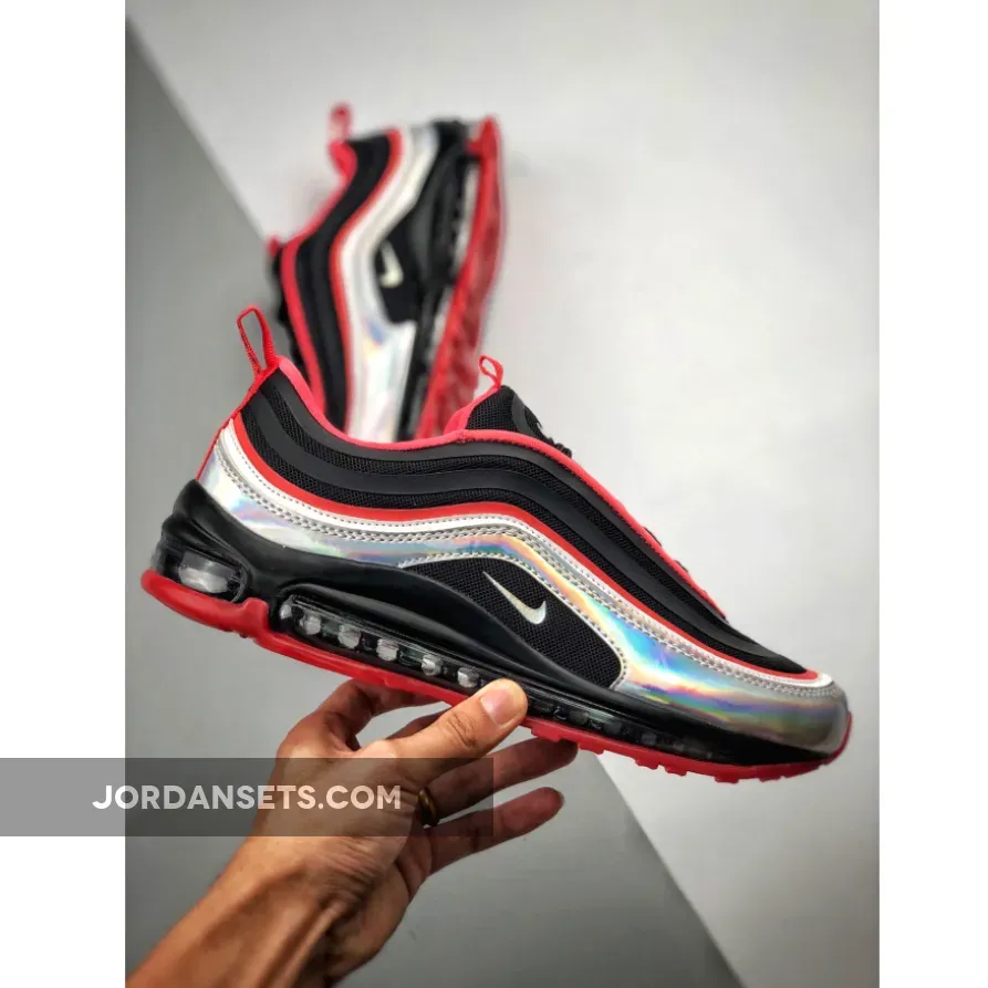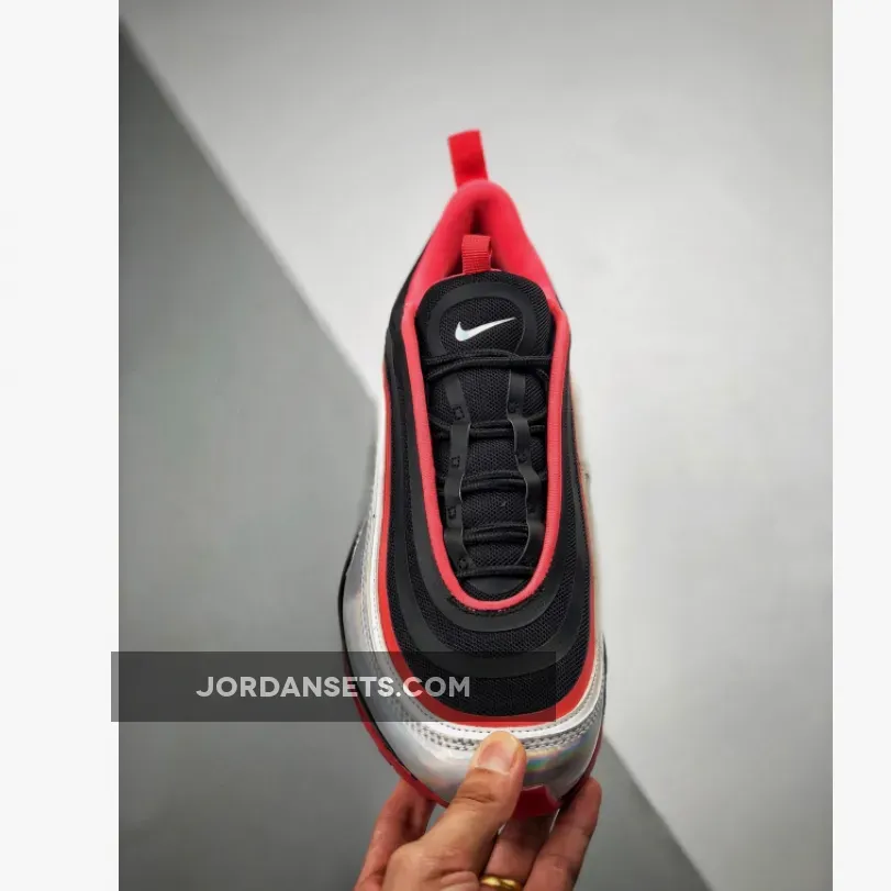 While the majority of the upper here is composed of a relatively simple combination of red and black, the mudguard itself is anything but minimal, boasting an iridescent silver that reflects different colours of the rainbow depending on how you look at it it. Crafted from a combination of premium materials, a full length Air unit sits down below the Air Max 97 Ultra Iridescent Black for endless comfort, and tongue and heel tabs are present for added convenience.
