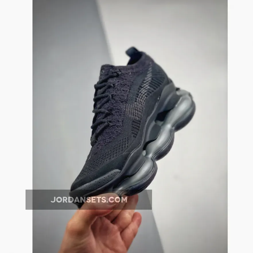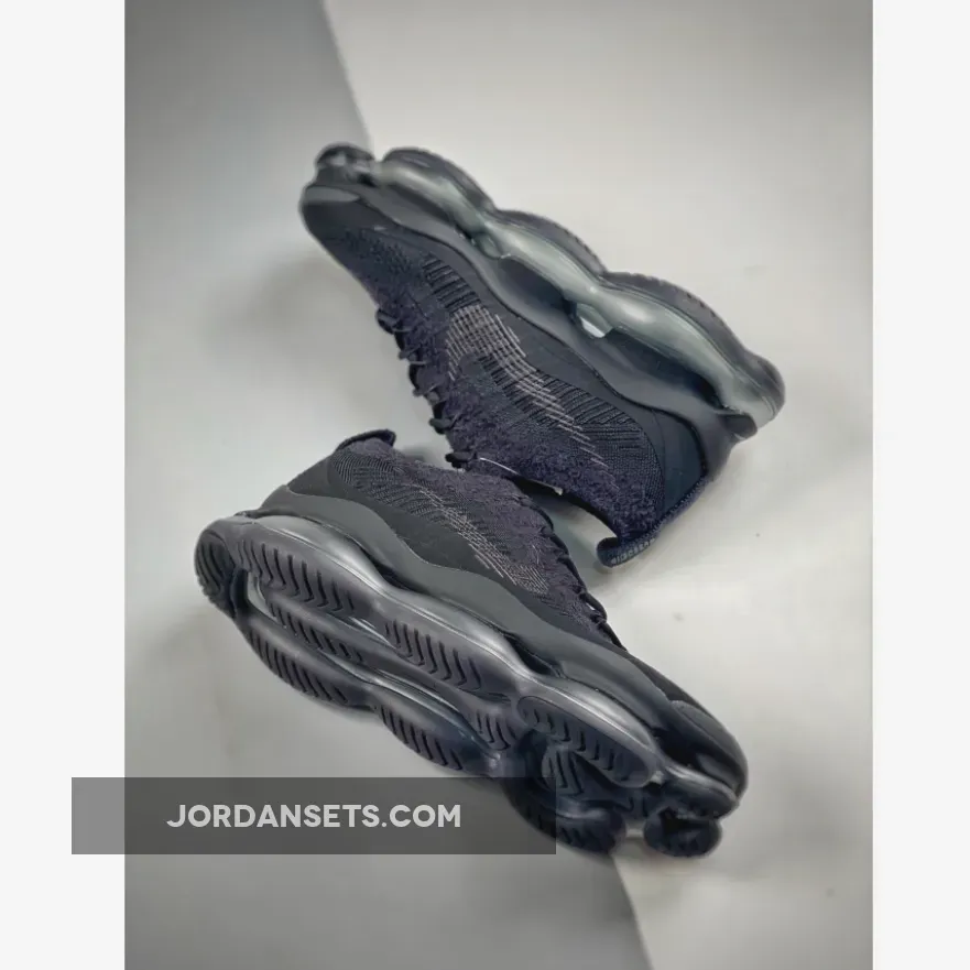 after a black colorway with a colorful sole popped up, “Triple Black” is set to cover the model. The classic makeover utilizes various shades of black and dark gray to subtly outfit the not-so-subtle model. While the Flyknit upper looks to be styled similarly to a contemporary Air Max, the bulky Air-infused sole unit elevates this model to an experimental look.