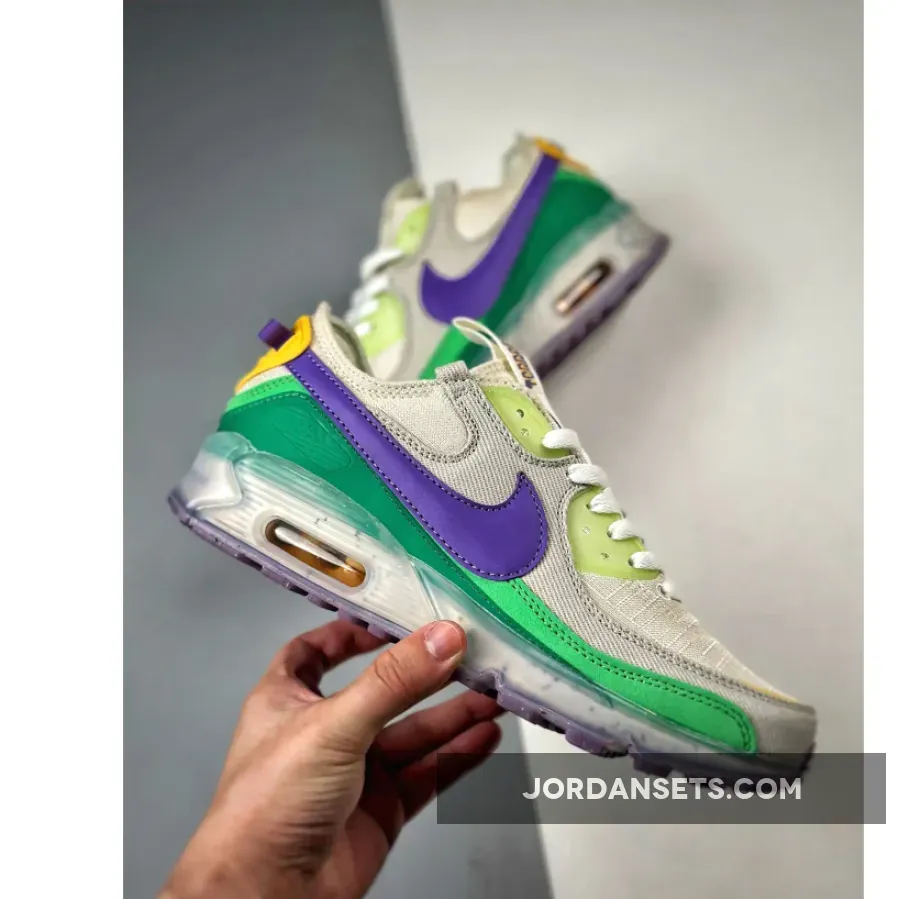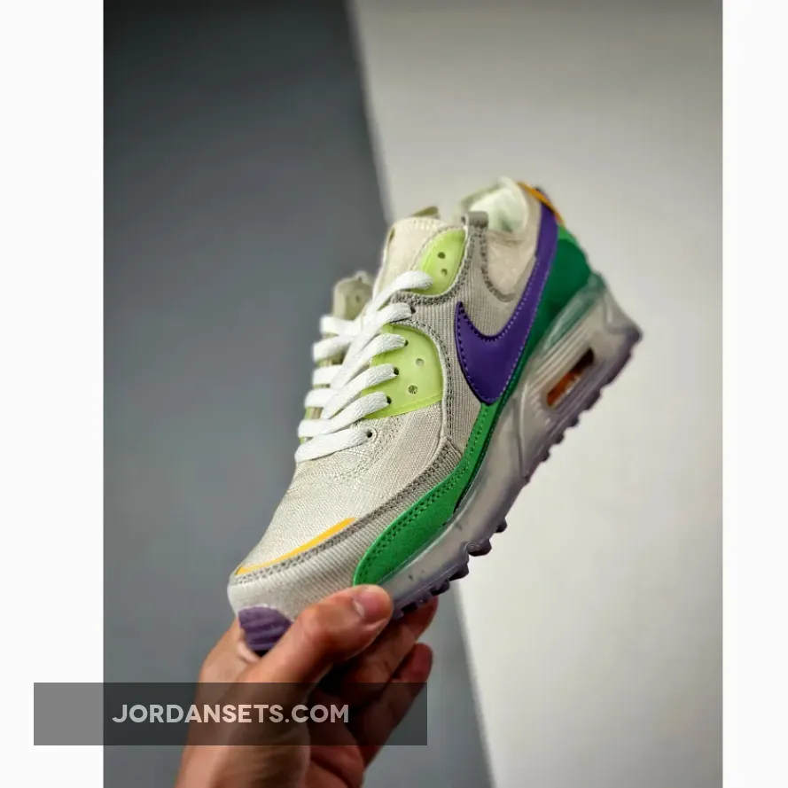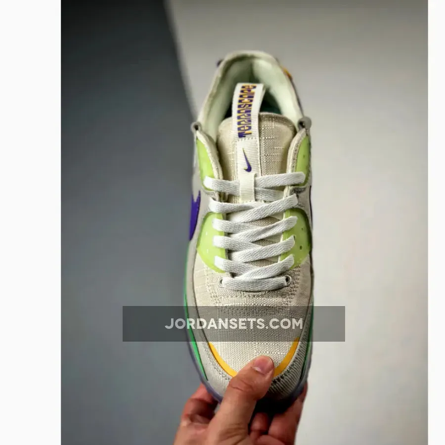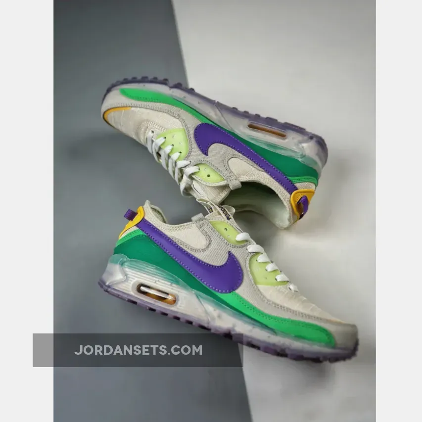Nike’s running silhouette inspired by the brand’s rich running heritage with a focus on modern lightweight trail running, the Air Max Terrascape 90, has a vibrant new drop with a purple accent. Get ready for the Nike Air Max Terrascape 90 “Action Grape”.This AMT90 has a “Phantom/ Action Grape/ Light Bone” colour colour scheme. Anchored in a phantom grey canvas material, the pair boasts tonal twill overlays at the toe and mid-panels. Bright splashes of colour in the form of green, purple and yellow accents adorn the eye stays and the fabric and plastic mudguards. Golden yellow tones bookend the shoe at the heel and toe. The highlight of the upper are the purple signature Swooshes that sweep across both the medial and lateral mid-panels. A semi-translucent sole unit with exposed Air Max units at the heel finishes off the style of this sneaker.Nab the Nike Air Max Terrascape 90 “Action Grape” on Our Store Supplier app and never miss any recent sneaker drops from Nike.