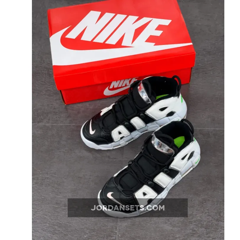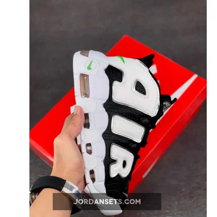 The Nike Air More Uptempo Black Metallic Silver sees bold hues of green splashed across the Nike branding, including the mini-Swoosh at the back of the Uptempo and the translucent ticks on the heel of this bold trainer. To make sure that everyone is aware of the comfort this Air More Uptempo delivers, the white, chunky midsole houses an exposed Air unit that extends the full-length of the shoe. The Uptempo has a high ankle collar, meaning there is support and comfort in every step, whilst the instantly recognisable silver Air panelling across the body of the kick extends all the way up. Nike can never go overboard with the Swooshes, so for good measure, there is another embroidered in silver on the toe box over the smooth leather overlay. The black lacing system appears a bit different to other Nike trainers, however it is functional and stylish at the same time. To cop the Nike Air More Uptempo Black Silver Green, use the links on this page and make sure to tag Our Store Supplier in your IG pics for the chance to be reposted!