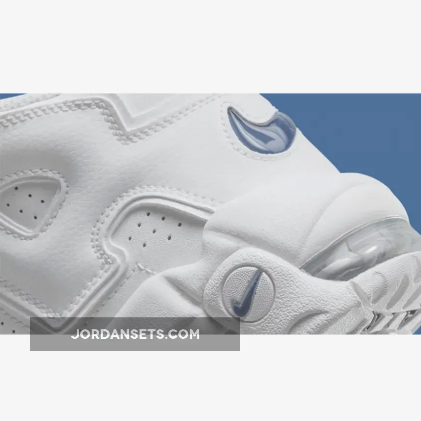 The funky Wilson Smith-designed Nike Air More Uptempo is back in a mostly-white colourway. Check out its latest addition, the Nike Air More Uptempo White Armory Blue. The base of the upper is a smooth and perforated white leather from heel to toe. The signature “AIR” branding, inspired by 90’s graffiti and pop art, across most of the medial and lateral sides contrast not in colour but in texture, with tumbled leather. The only details in the titular Armory Blue are the embroidered Swooshes on the toe box, the encircled Swoosh on the lateral and medial heel, the 3D swoosh in a transparent cassette on the cupsole, the exposed Air unit and the Swooshes on the tread.