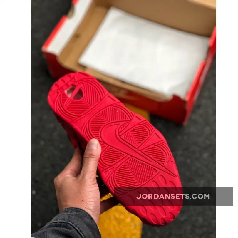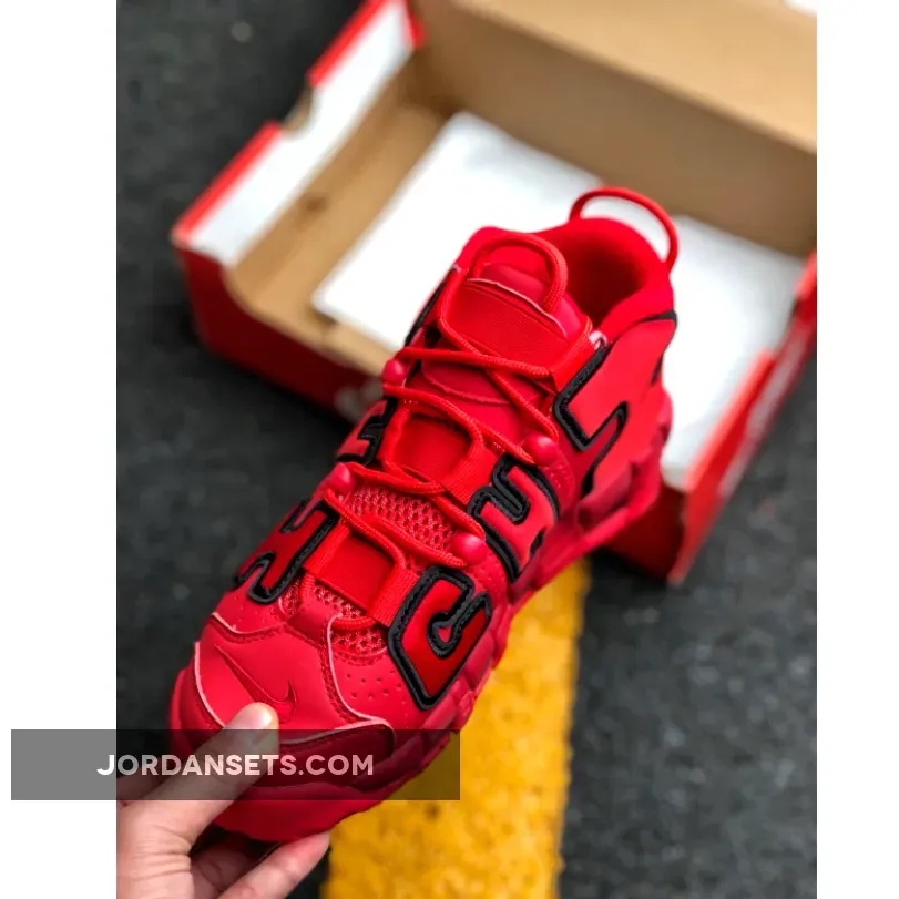 Continuing the theme that was first used on the Supreme collaborations. This “Chicago” edition for Nike Uptempo is highlighted with an oversized “CHI” on the sides outlined in Black. Red covers the rest of the shoe, including the rubber outsole.