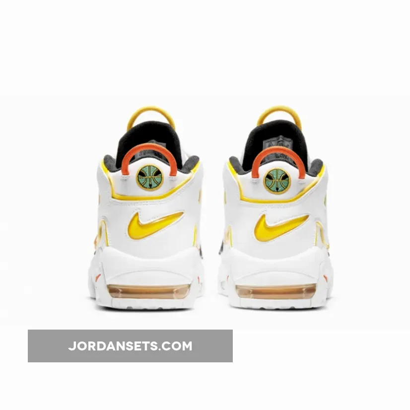 Nike’s world-famous basketball sneaker from 1996 is making a huge comeback in the form of the Nike Air More Uptempo Roswell Rayguns White. This latest offering from the Swoosh Brand is guaranteed to turn heads anywhere you go so keep reading on for a detailed look.Arriving in signature colorways taken from the uniform of Nike’s fictional ABA team globally known as the Roswell Rayguns, tints of black, orange, and yellow runs along the borders of the model’s traditional oversized “AIR” lettering across the medial and lateral sides on a white leather upper.Additional photos show further co-branding details on the tongue and heel to complete the design. In the mean time, browse our site for your daily footwear fix.