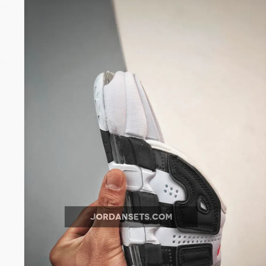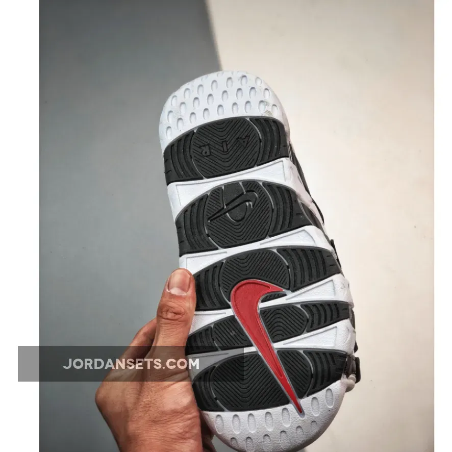 The upper layer of this Nike-designed offering translates the Air More Uptempo hoops shoe by borrowing its oversized, nubuck “AIR” letters and placing them on the lateral and medial walls in black. Beneath that is an angelic white base that features perforations in between each of the aforementioned letters while a pop of red is visible along the Swoosh logo that resides over the bridge of the foot to form a palette that Scottie Pippen would likely appreciate. Footbeds are debossed with a circular Nike logo and come formed with dotted textures that run their length. Black and white stripes coupled with reversed Swoosh insignias on the outsoles mimic the classic hoops-turned-lifestyle product.