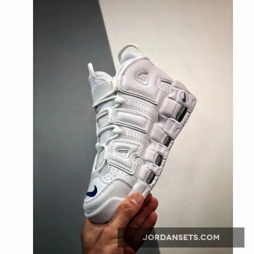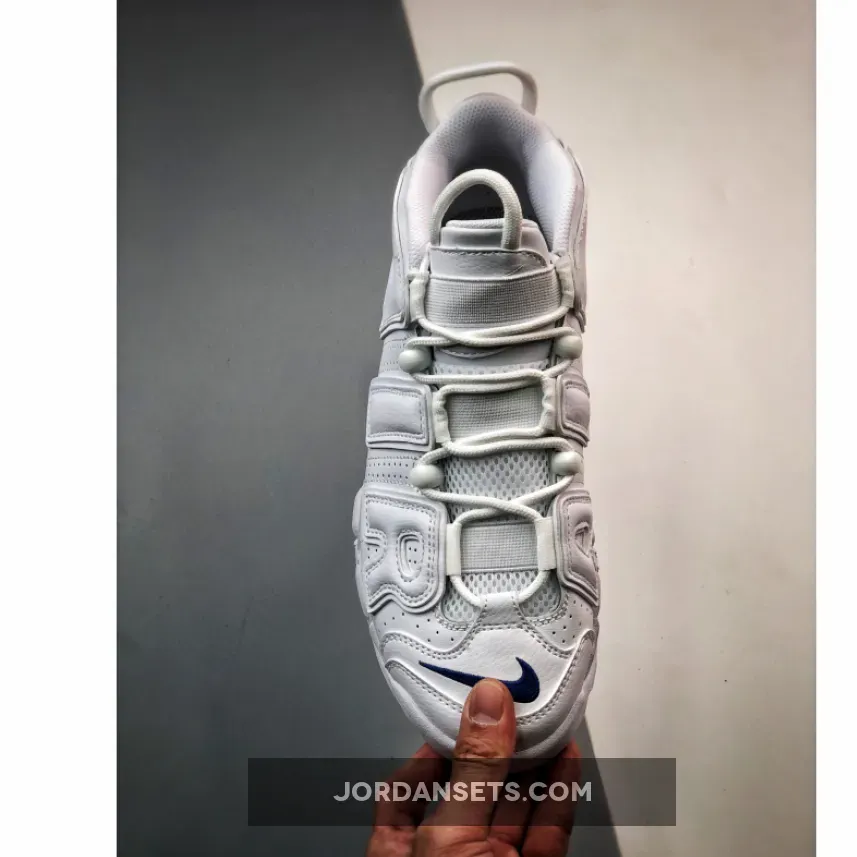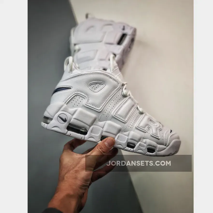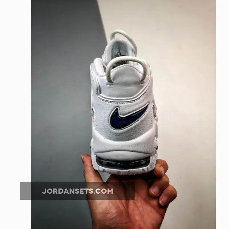 While the Nike Air More Uptempo silhouette has always had playful and colourful releases, it now has a new, clean variant with a minimalist approach. Introducing the Nike Air More Uptempo White Navy. The colourless design is interrupted by Midnight Navy accents, the mini Swooshes on the toe box, the raised Swoosh badges on the lateral heel, and the jelly Swoosh on the heel tab.
