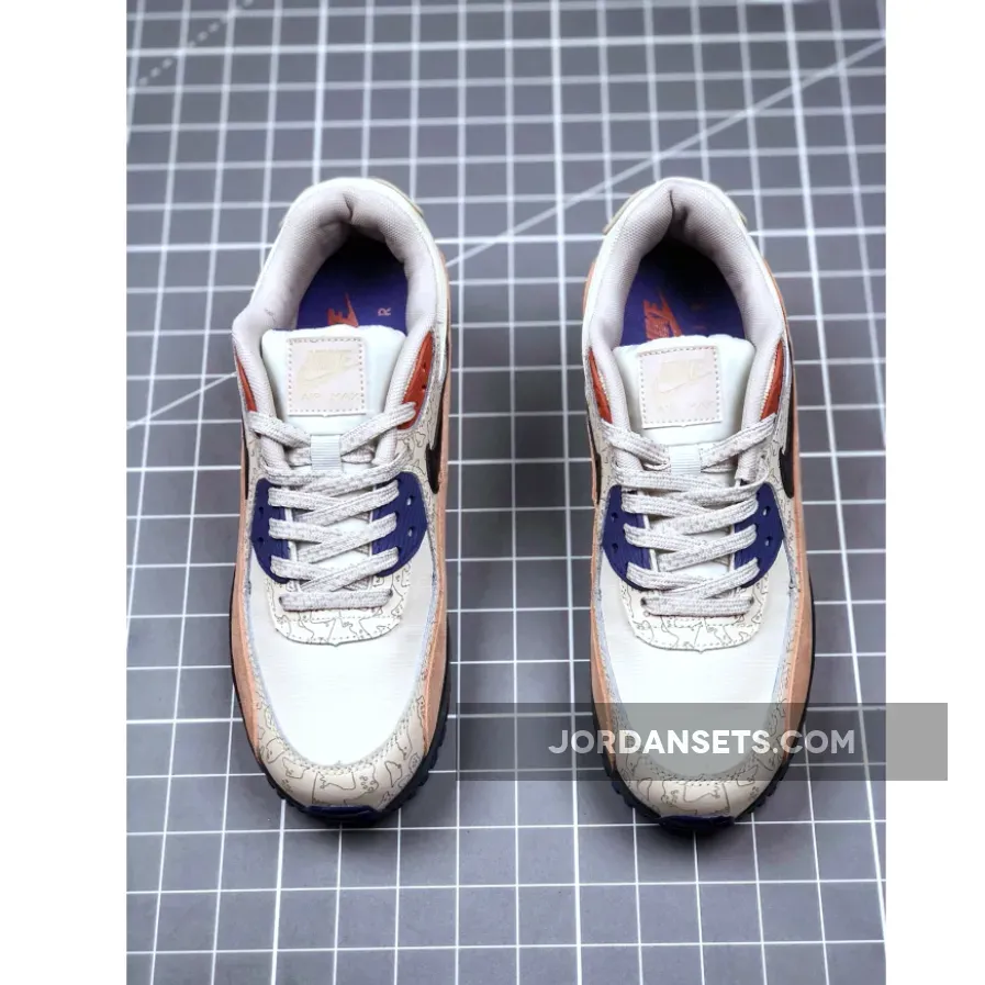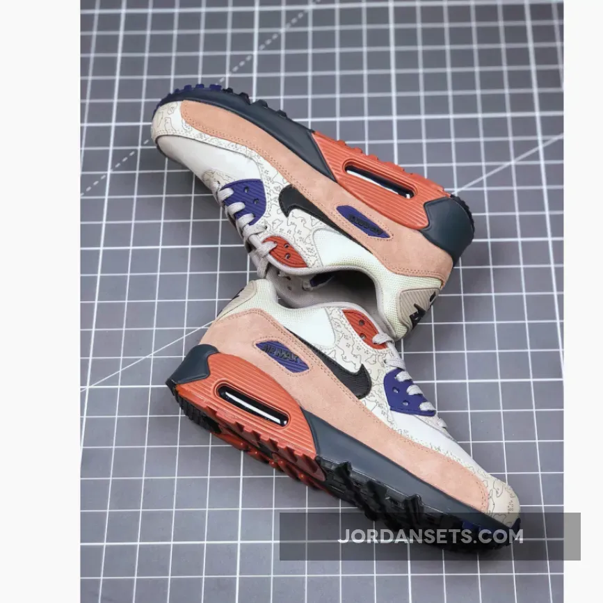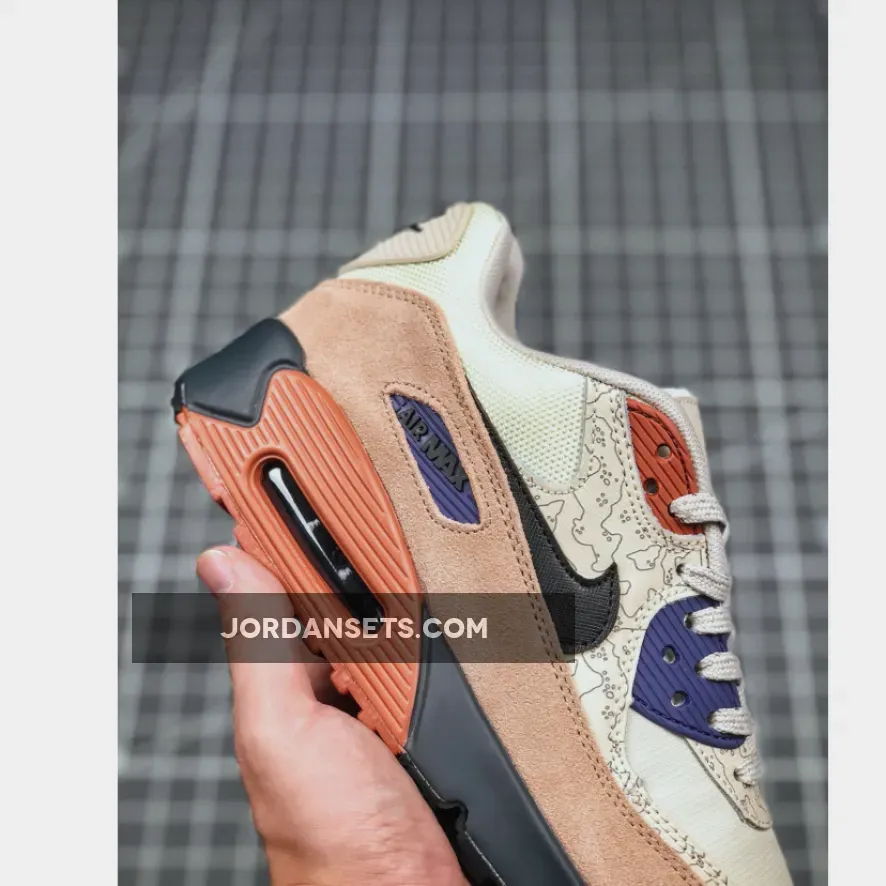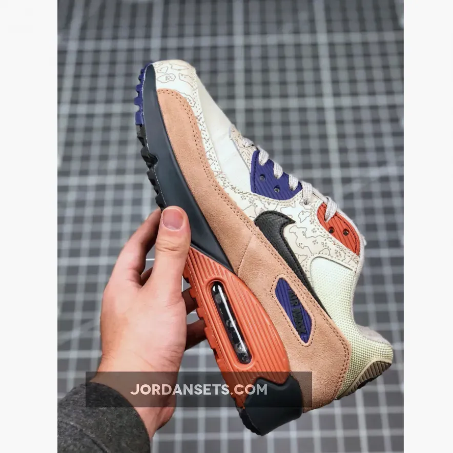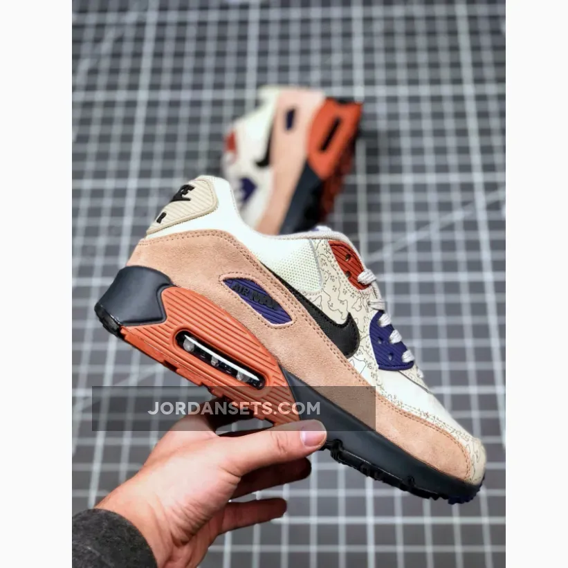 This offering of the Nike Air Max 90 features natural Sand shades throughout its upper with hits of Burnt Orange and Purple to give off that ACG vibe. Highlighting the shoe is the subtle engraving across the leather panels, reminiscent of terrain patterns seen on maps.