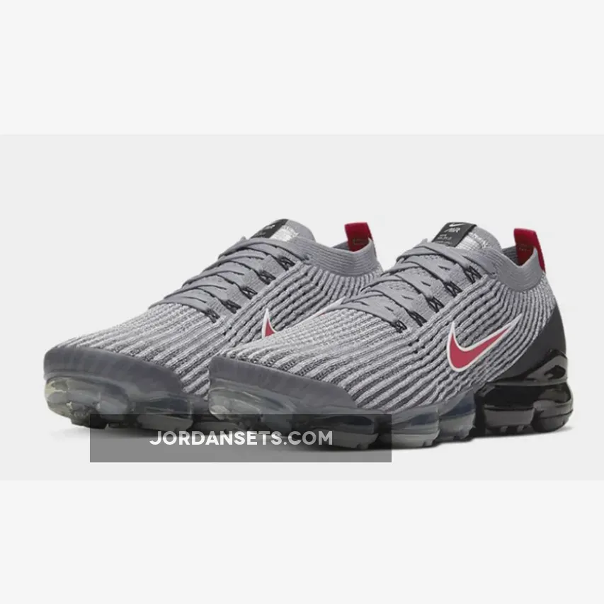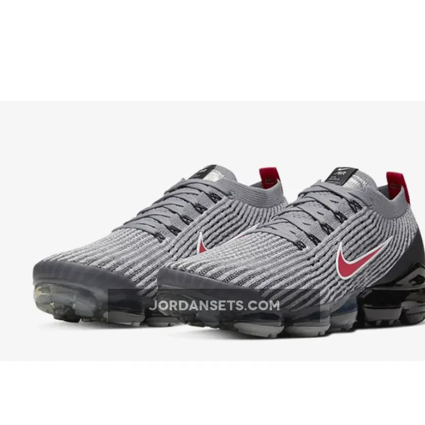 We just can’t get enough of the new Nike Air VaporMax Flyknit 3 Iron Grey Red. Releasing as part of the Beaverton brand’s Spring 2020 collection, this sock-like silhouette has been making waves for the past three years, and to no one’s surprise, it’s still as popular as ever.Crafted from a full Flyknit construction for a fit that wraps around every contour of your foot, the Iron Grey features pinstripe like detailing across its upper, while deep red accents hits the lateral and medial side Swoosh and heel tab for a pop of contrast. A dash of metallic silver can be found at the tongue for added depth, and down below is where all the magic happens.Sitting on top of a full length Air unit for unbeatable comfort and cushioning, the front half is touched up in a clear glossy finish, while the back has been murdered out for a stealthy aesthetic.