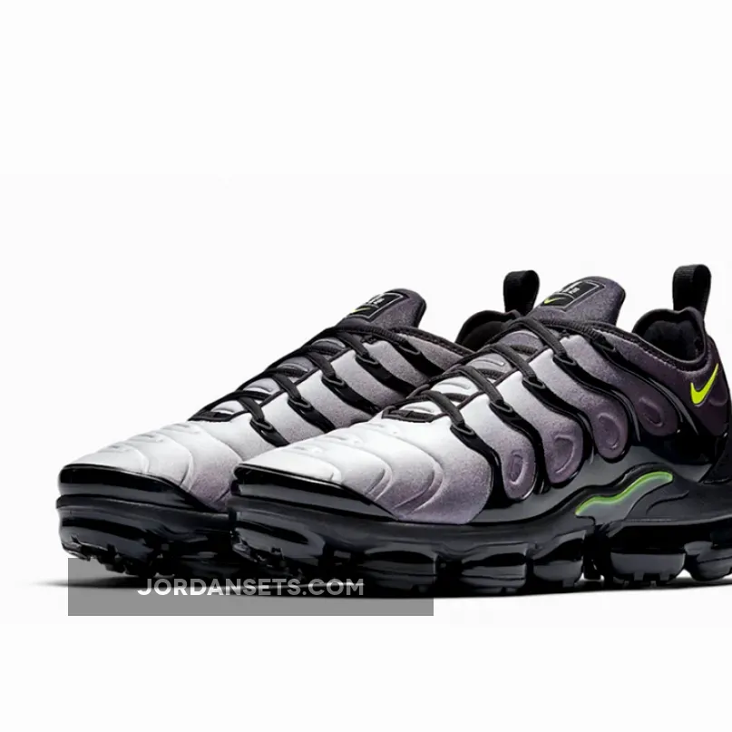 This Nike Air VaporMax Plus comes dressed in a Black, Volt and White color combination. Looking closer they feature a smoky gradient across the uppers which has a White to Black fade. Following we have Volt detailing while Black covers the VaporMax Air unit. Completing the look is 3M Reflective detailing on the tongue.