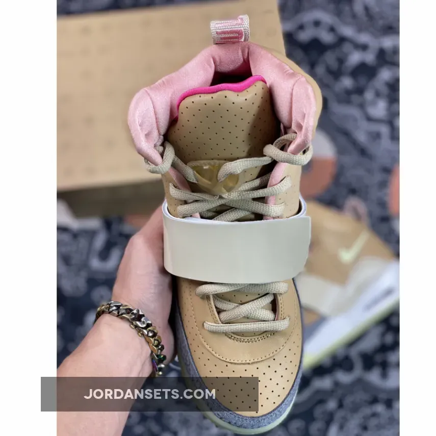 The Air Yeezy ‘Net’ launched in June 2009 and would be the third and final colorway of the debut sneaker from Kanye West and Nike to hit stores. The shoe features a beige leather upper stopping at a high collar lined in pink, mounted on a two-tone midsole borrowed from the Nike Air Jordan 3. The smooth and glossy finish on the patent leather midfoot strap is contrasted by a perforated leather vamp and suede toe wrap, embossed with an all-over ‘Y’ print.