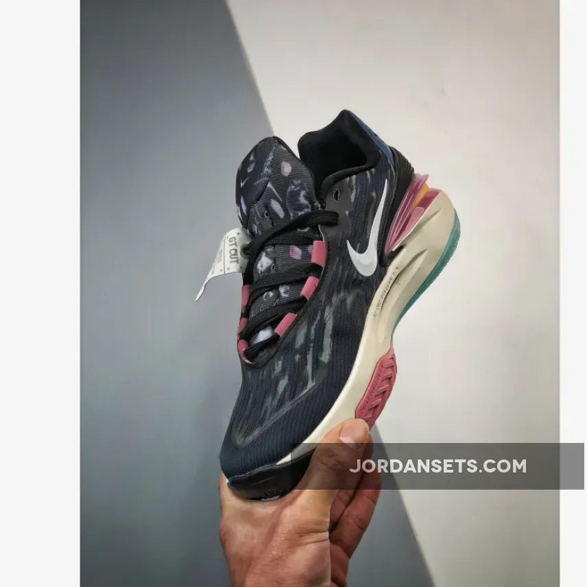 Nike’s newly-released performance basketball silhouette, the Zoom GT Cut 2, has quickly rolled out a new colourway with a gemstone print and bursts of blue and mauve. Meet the Nike Zoom GT Cut 2 Black Desert Berry.
