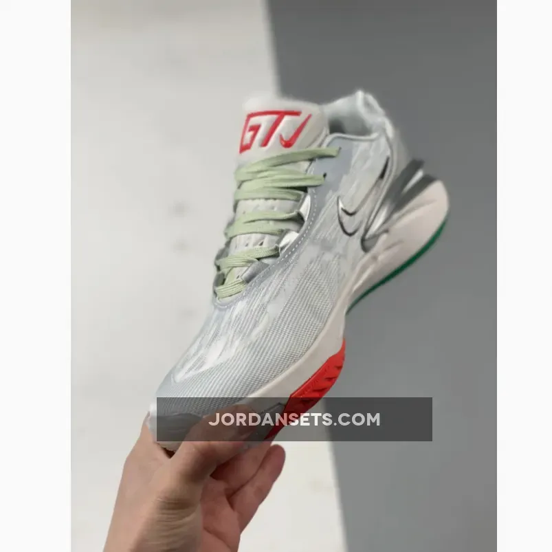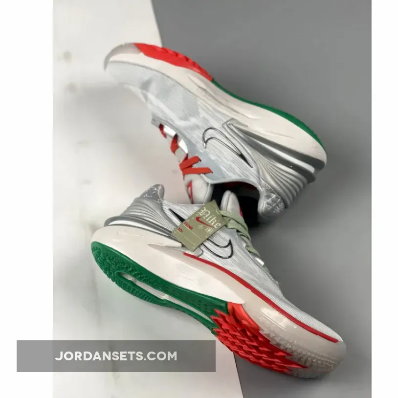 This Nike Air Zoom GT Cut 2 boasts a charming color palette of Violet Dust, Luminous Green, Purple Ink, and Picante Red. The shoe embraces the holiday spirit with a satin heel tab adorned with delightful snowflake motifs, perfectly complemented by a special hangtag. Further, the shoe exudes Christmas vibes through the vivid Green and Red accents that adorn its design. Its comfort is ensured by the combination of Air Zoom Strobel cushioning and a Zoom Air unit in the heel, all resting atop a semi-translucent outsole.