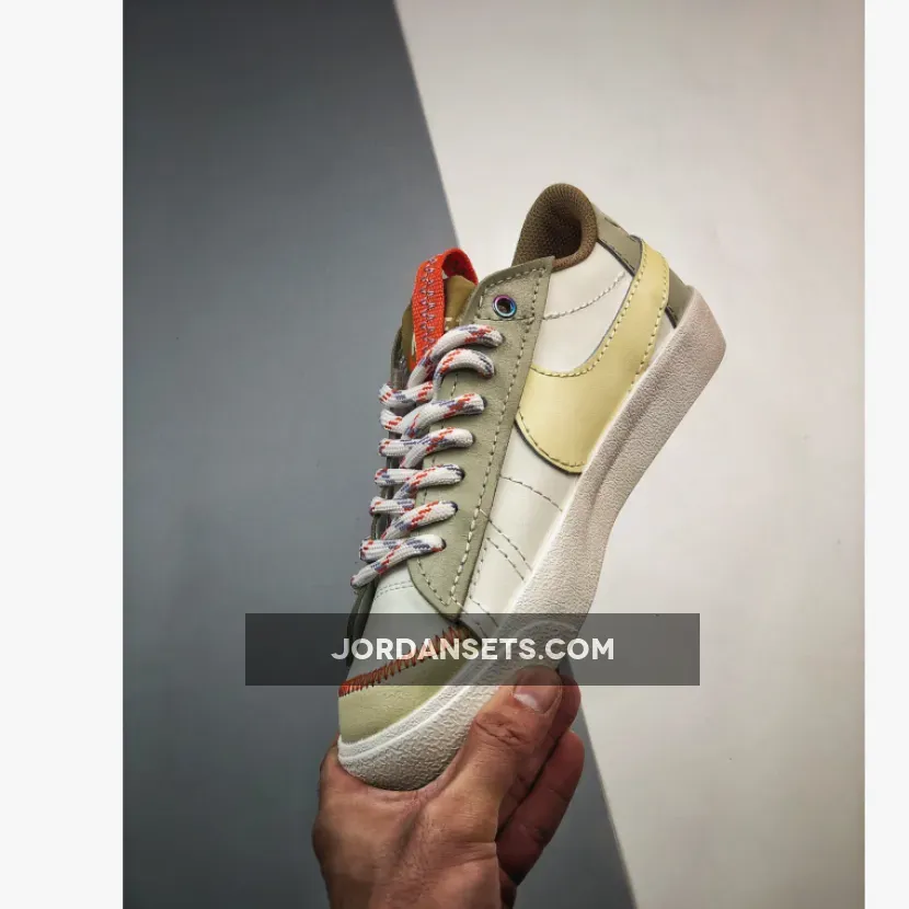 Cute and quirky, the Nike Blazer Low Jumbo Sail boasts an interesting multilayered mixed-material upper. Even the tan suede eye stays and heel accent also showcase an oversized look.