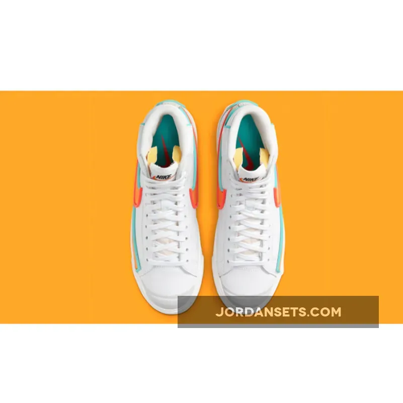 ? “I’m thrilled with my new Nike Blazer Mid 77 D/MS/X White Aurora Green! ? The white leather is smooth and premium quality. I love how the vibrant orange and blue accents pop against it ?. Comfortable too! ? Would highly recommend for anyone looking for a stylish and well-made sneaker ?. 5/5 stars ⭐️⭐️⭐️⭐️⭐️”