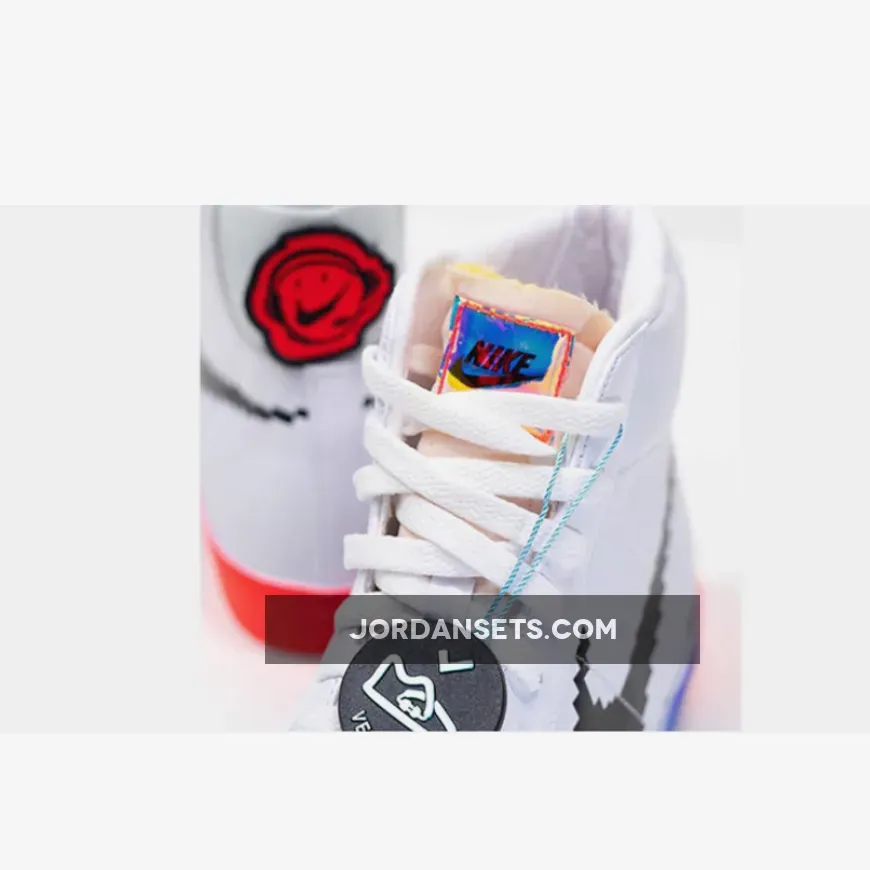 This Blazer Mid ’77 Vintage iteration dons a White/White/Bright Crimson/Black colorway, but that’s only the beginning of the story here. The shoes are packed with details, notably a “have a good game” print across the lower heels, a pixelated Swoosh logo, playful Velcro heel patches, a multicolored sole, and an all-over glow-in-the-dark branding treatment—and that’s only scratching the surface.