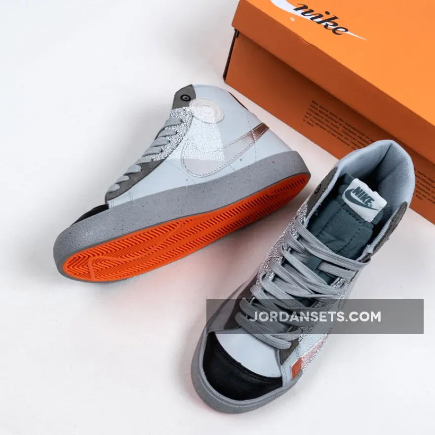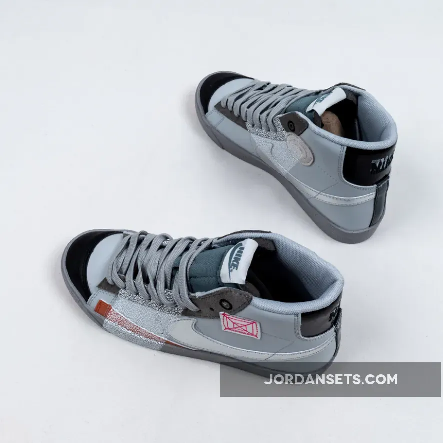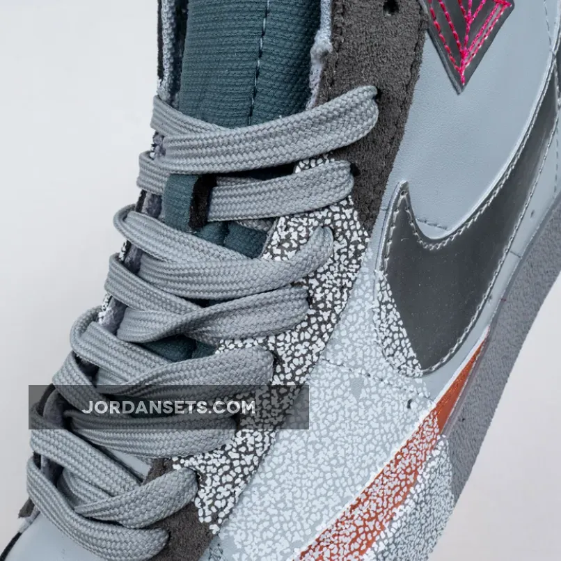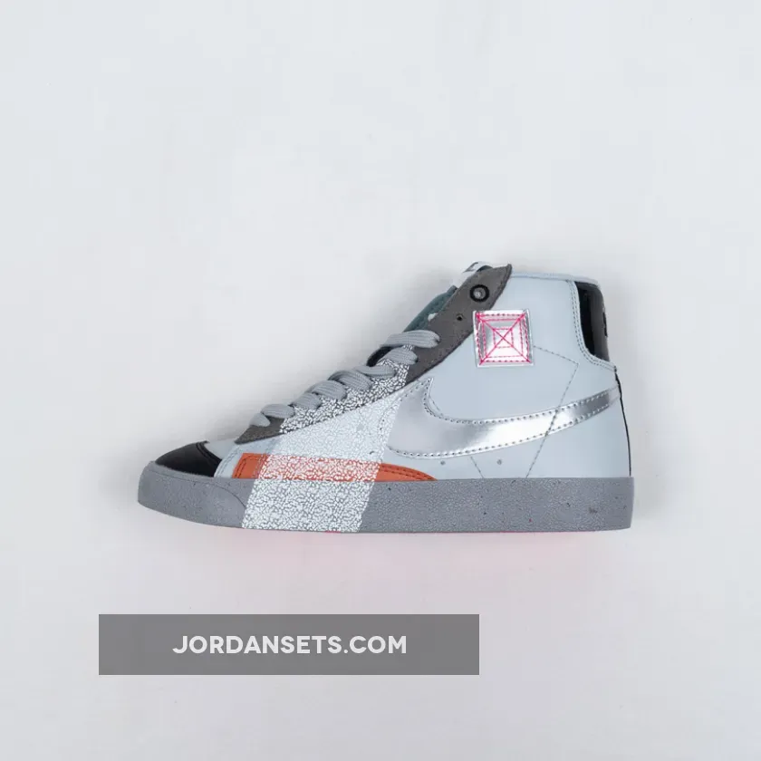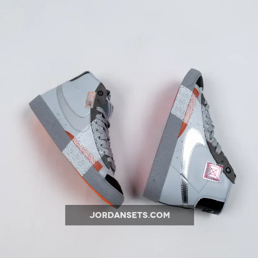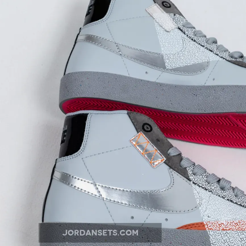 Clad in various shades of grey and blue, the mid-top Blazer makes a statement with the assortment of metallic silver accents throughout its upper. Suede along the forefoot and tongue not only deliver varying texture, but also color-blocking to the pair, with the former sporting a bright orange. Appropriate for the experimental take, “NIKE” branding on the heel is double-layered, with the text underneath boasting a larger size and reverse orientation. Finally, sockliners are branded with “沪”, which translates to the “Shanghai, China” and a swoosh logo.