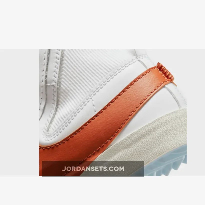 Even with only two neutral colours in its palette, the Nike Blazer Mid 77 Jumbo Dark Russet is still remarkably striking. Smooth white leather envelops the entire upper including the toe cap and throat area. The colourless look is interrupted by an imposing exaggerated brown Nike Swoosh that extends down to the midsole. Elsewhere in the ankle, the fabric sock-like design that’s a mainstay of Blazer silhouettes remains. Rounding off the crisp look of this pair are hits of pastel blue in the lace elastics and patterned outsole.