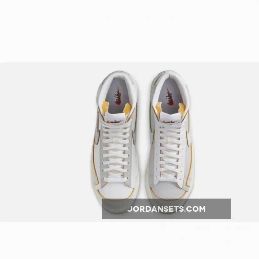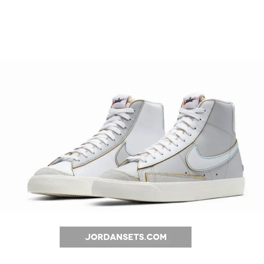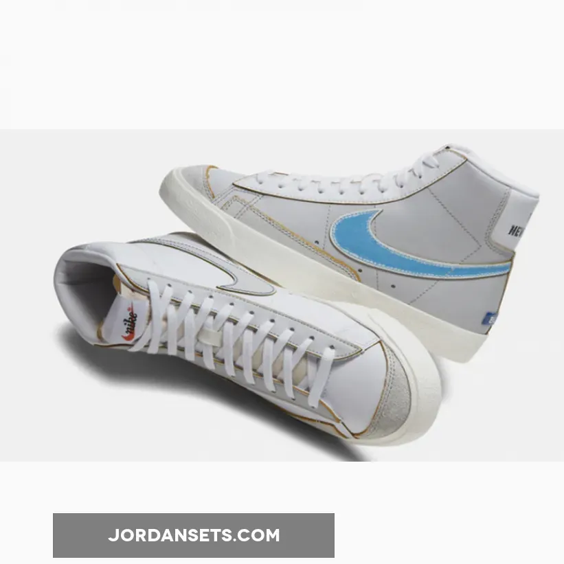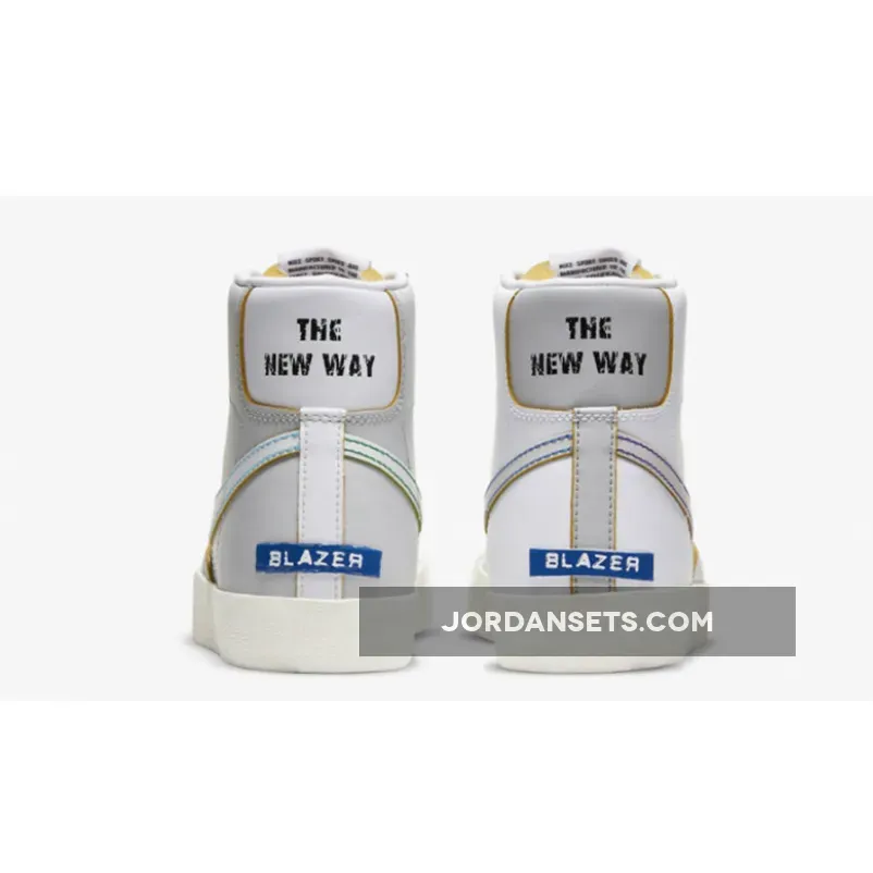 you’ll find a bright blue underlay that matches with its bordering exposed stitchings. In term of the lateral/medial sides, they split between a light grey exterior on the former and angelic outers on the latter. Moreover, the heels trade out the normal “Nike” text for “The New Way”, and the lower rear spells out the shoe’s moniker in paint-like font.
