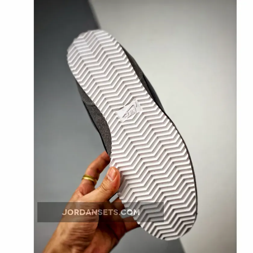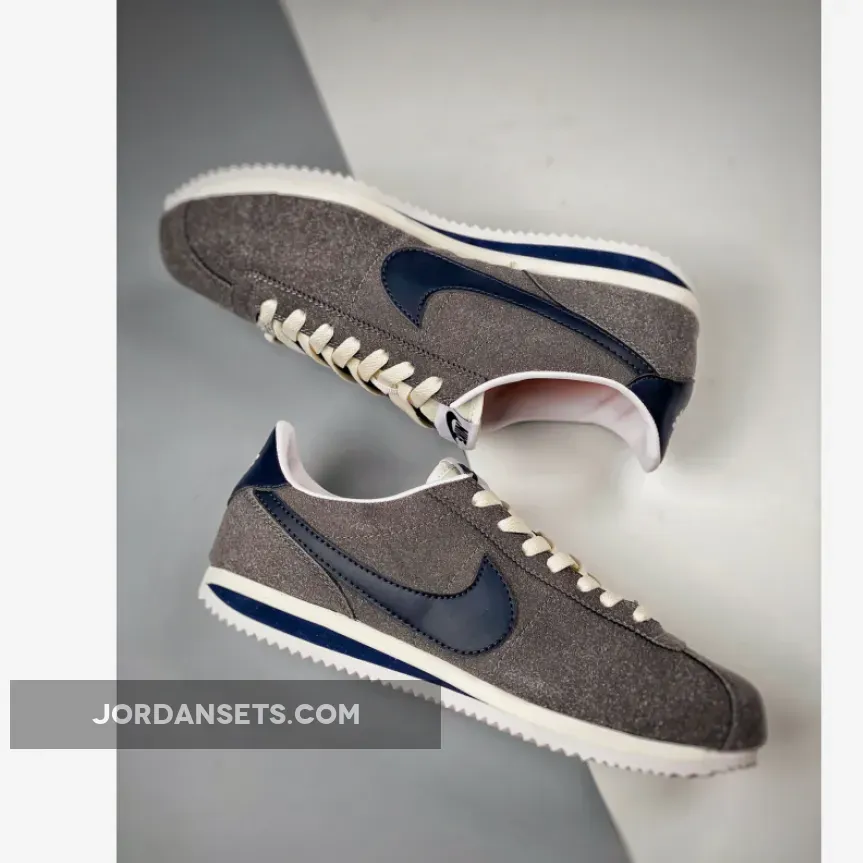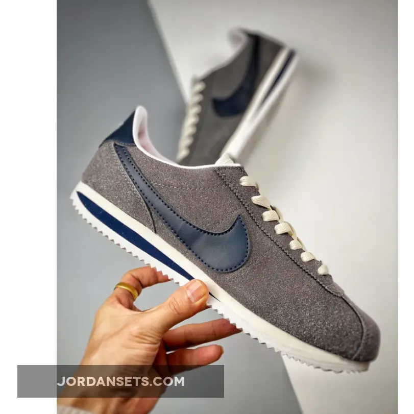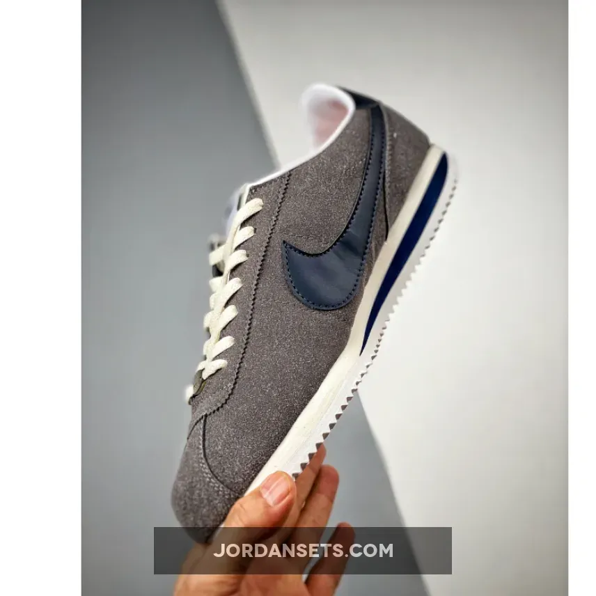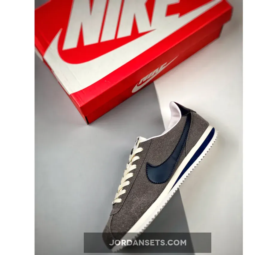 Nike’s OG running shoe, the Cortez, has a new variant honouring Georgetown University’s college basketball team, the Hoyas. Presenting the Nike Cortez Georgetown. This Cortez is clad in an all-grey suede upper from heel to toe. The Sail-coloured laces and nylon tongue contrast with this dark background. Another Hoya team colour joins the mix in the form of the navy blue smooth leather signature profile Swooshes on both the medial and lateral mid-panels. The insoles are bright orange with white Nike branding. The branding on the white tongue labels also follow suit.
