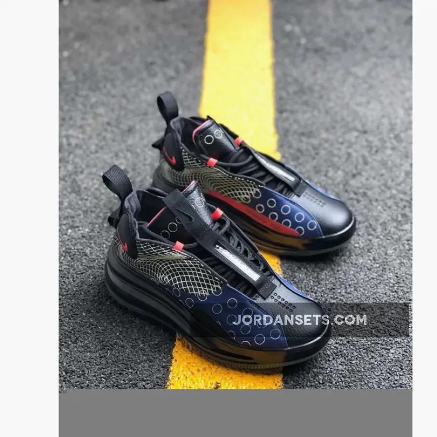 Set to launch in two color options, one in Blue Void/Red Orbit-Black and the other in White/Black-Wolf Grey. Both feature a combination of tumbled leather with synthetic textiles highlighted by an embroidered circular design with a grid pattern on the quarter panels. Additional details includes a speed lacing system, nylon pull tabs, padded leather collar atop a rippled rubber outsole.
