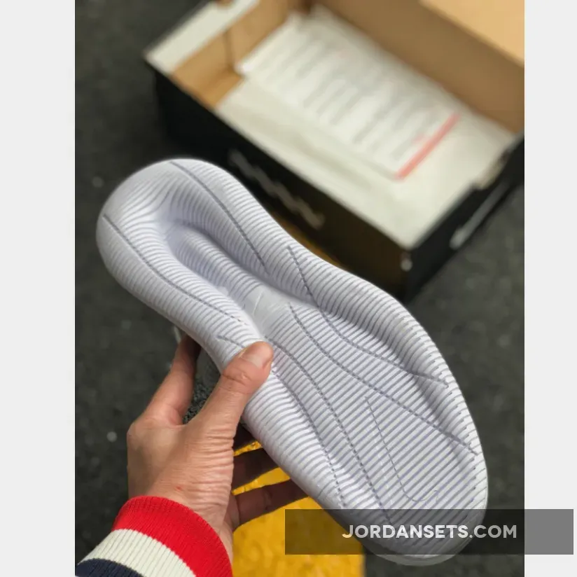 Set to launch in two color options, one in Blue Void/Red Orbit-Black and the other in White/Black-Wolf Grey. Both feature a combination of tumbled leather with synthetic textiles highlighted by an embroidered circular design with a grid pattern on the quarter panels. Additional details includes a speed lacing system, nylon pull tabs, padded leather collar atop a rippled rubber outsole.