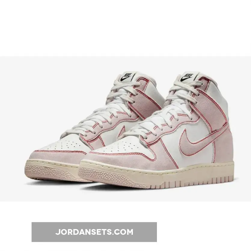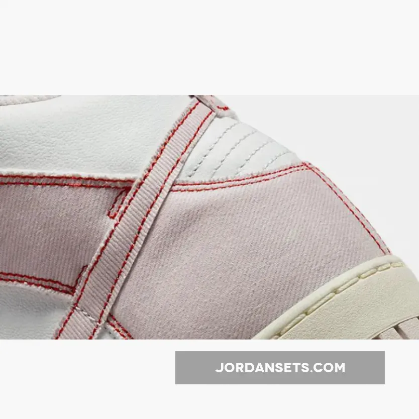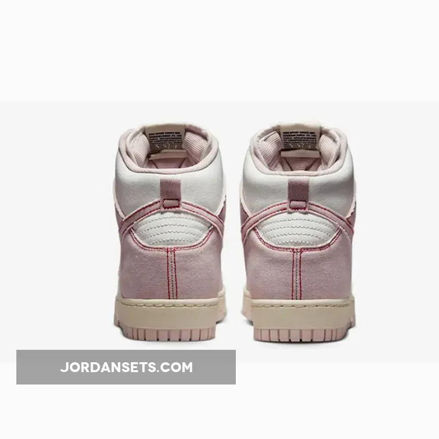 . This line continues to innovate. Meet the model’s latest offering, the unconventional-looking Nike Dunk High 1985 Pink Denim.Like most of the variants of the Nike Dunk High 1985, this particular shoe has a two-tone colour scheme. It has white leather underlays which match the laces and nylon tongue. The overlays and the medial and lateral Swooshes catch the eye due to their pink denim material with a slightly washed finish. Exposed red stitching outline all the overlays, including the Swooshes, giving the shoe an illustrated look.