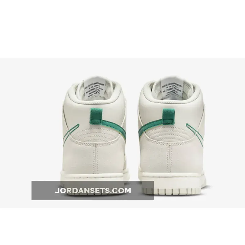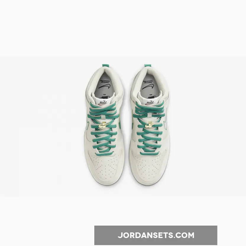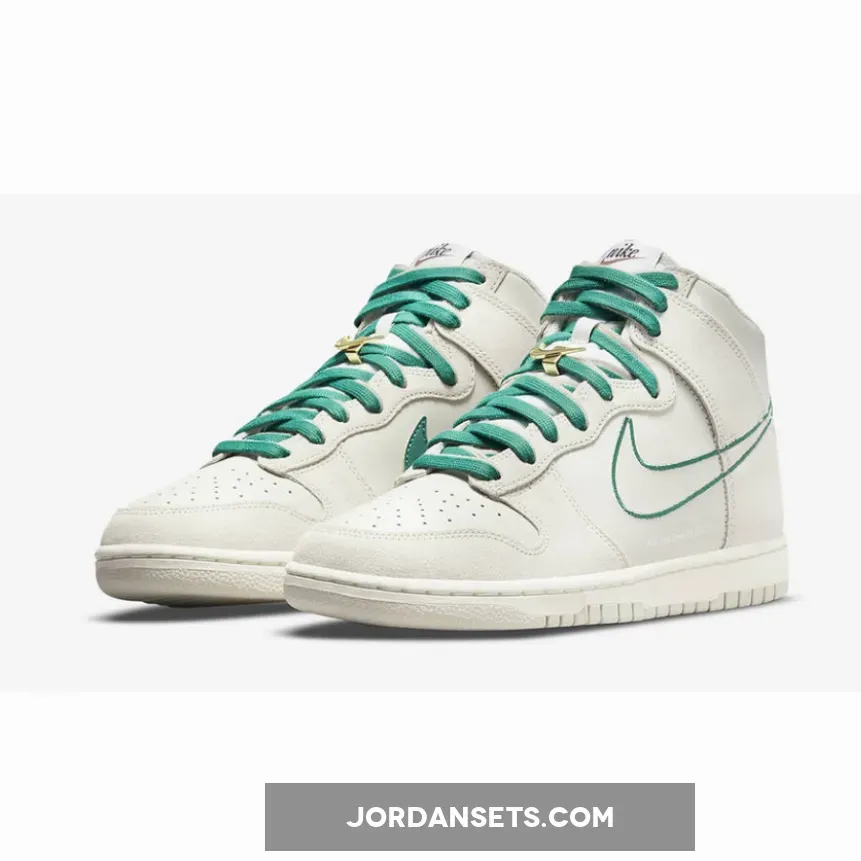 Nike’s Dunk silhouette has released in numerous iterations since its revival in 2019. Some have surfaced in retro colourways, while some come with new outfits that have become a hot topic in the sneaker industry. The latest offering from the Swoosh team is the Nike Dunk High First Use Light Bone Green Noise, and we’ve got a closer look at the images right here, so read on as we dive deeper.Working on a high-top construction, the pair exhibits a super smooth leather base hued in a Light Bone colourway equipped with tonal suede overlays forming the toe caps, eyestays, and rear segment.Giving this iteration a pop of contrast is outline Swoosh logos and laces opting for a green-like hue.