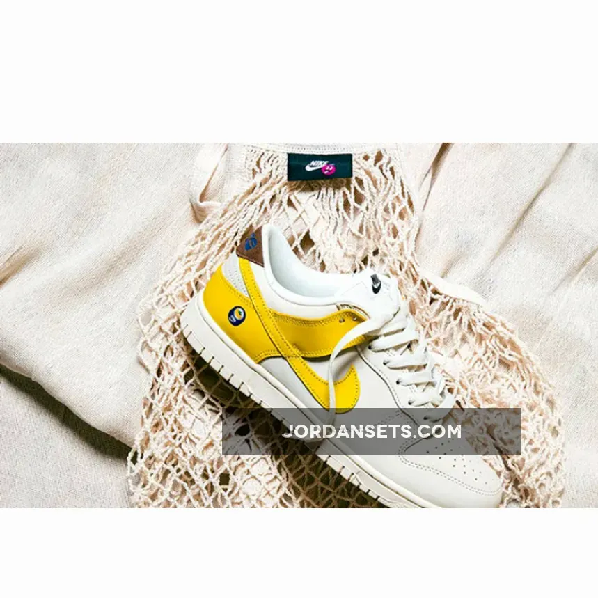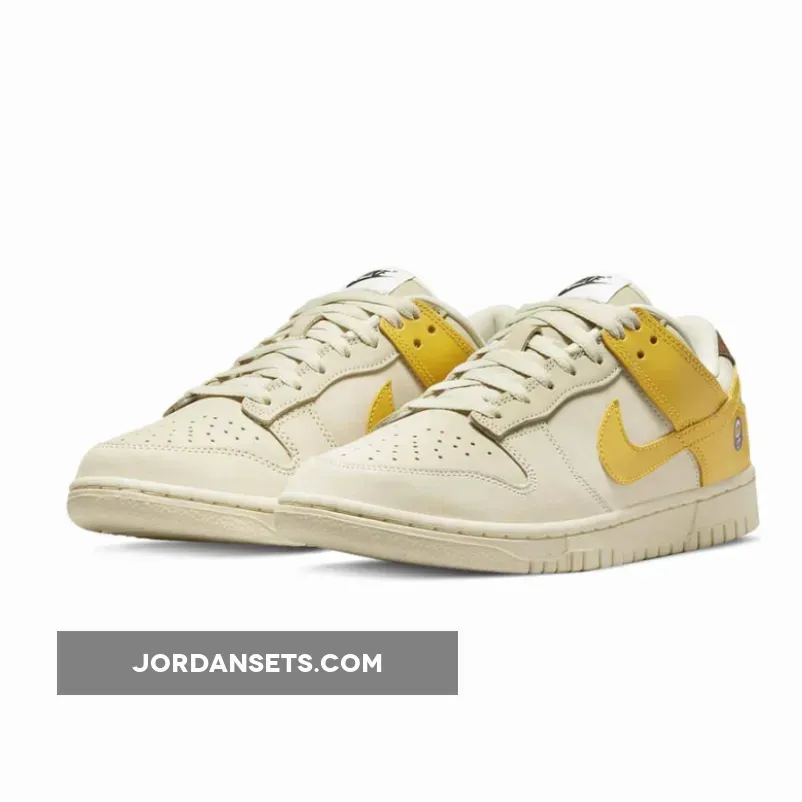 Meet a shoe that will make you go bananas. Say hello to the Nike Dunk Low Banana. Sporting a colourway inspired by the nutritious fruit, this pair begins with a clean cream base that animates the perforated toe box, throat, side panels and collar. Bold yellow accents come via the Swooshes and heel overlay.