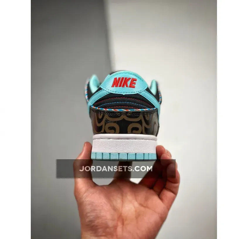 The Nike Dunk Low “Barbershop” features an all-black tumbled leather upper with hues of light blue throughout. Additionally, the offering includes white, blue, and red molding mimicking traditional barbershop poles. Highlighting the pair are mismatching lace tips, a clip blade doubling as lace dubraes, and red branding on the tongue. Elsewhere, graphics of hairstyles appear on the back-end of the pair along with light blue Nike Checks.