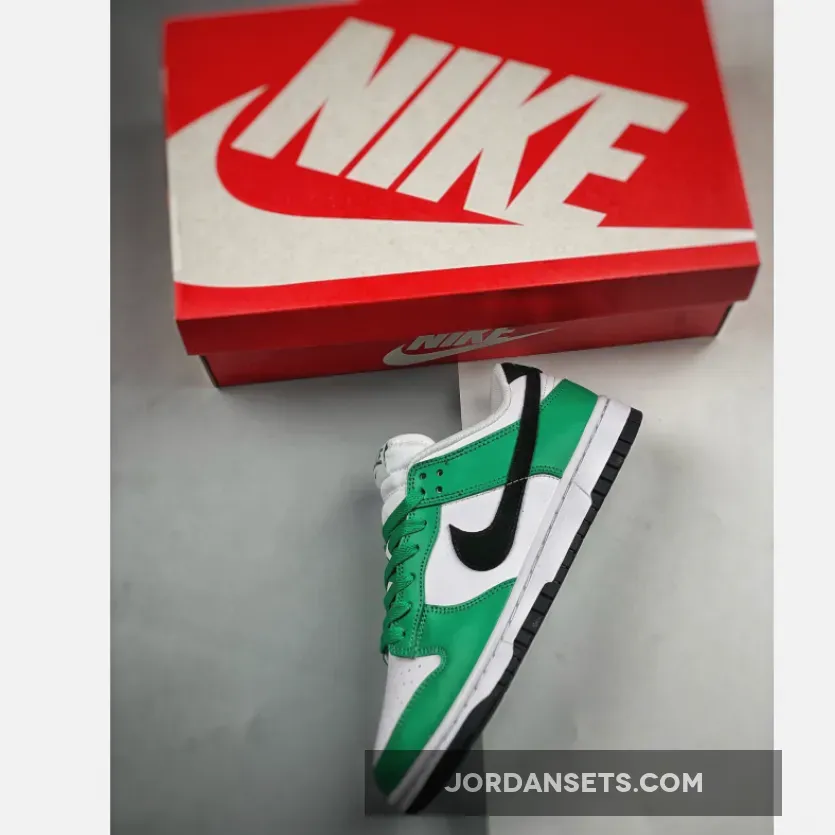 Nike now readies the low-cut model in color-blocked Boston Celtics hues ideal for basketball fanatics. The Massachusetts-based team stimulates the colorway as a sleek white base starts things off, contrasted by vivid green touches that hit the mudguards, lacing systems, and heel counters.bearing quite the resemblance to the OG ‘Heineken’ Dunks. The similarities lie predominantly by way of the colour palette, with the pairs featuring white underlays with green overlays. The colourway also comes complete with black Swooshes. The pair is complete with white midsoles and black rubber bottoms.