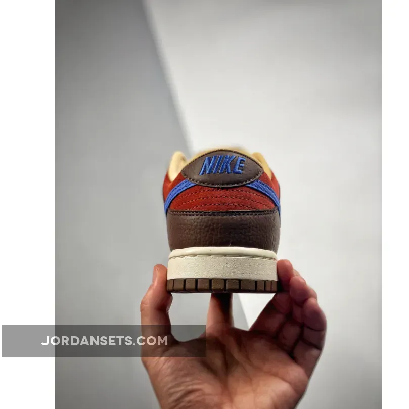 The college basketball-inspired Nike Dunk has just dropped a delicious-looking variant in appealing and contrasting shades. Introducing the Nike Dunk Low Brown Blue. The suede base of this low-cut Dunk comes in a cocoa-coloured brown. The chocolate theme continues on the mocha-hued tumbled leather overlays on the toe cap, the mudguard, the eye stay panel and the foxing. The laces match the overlays while the tongue matches the base. The tongue lining and mesh sock liner are in a cappuccino froth shade. The blueberry hues of the profile Swooshes and the tongue branding just go very well with the all-brown upper.