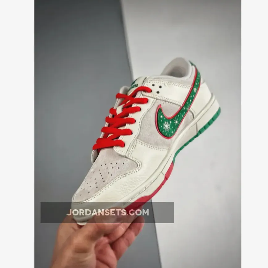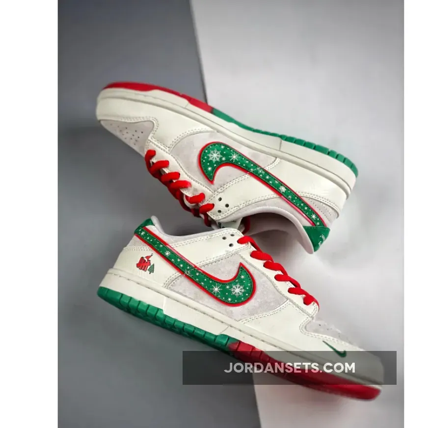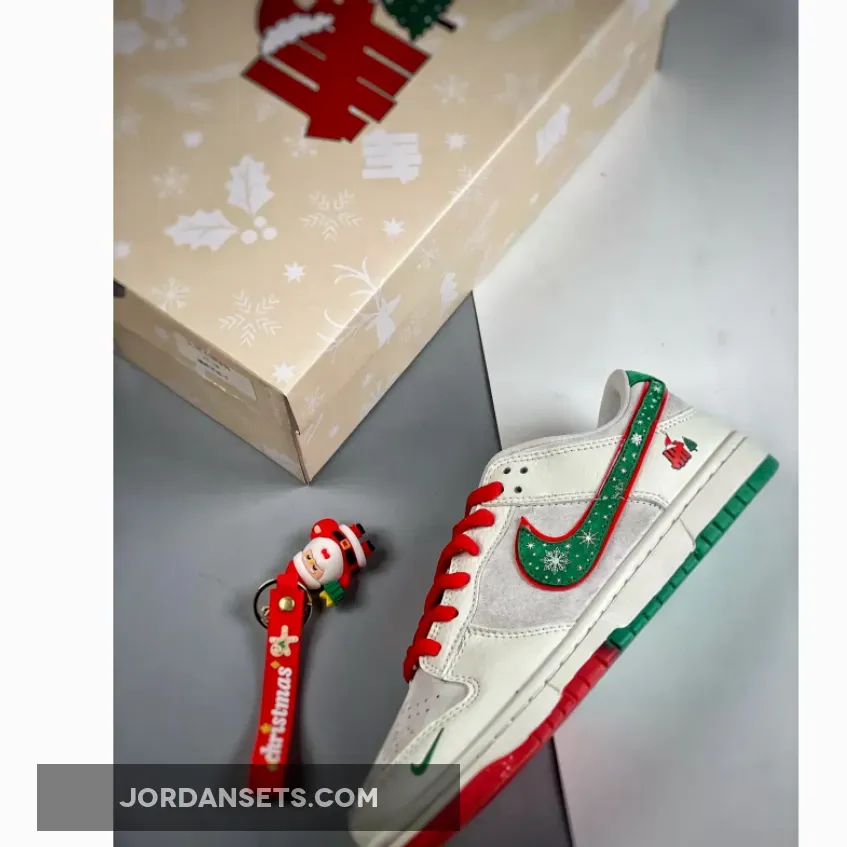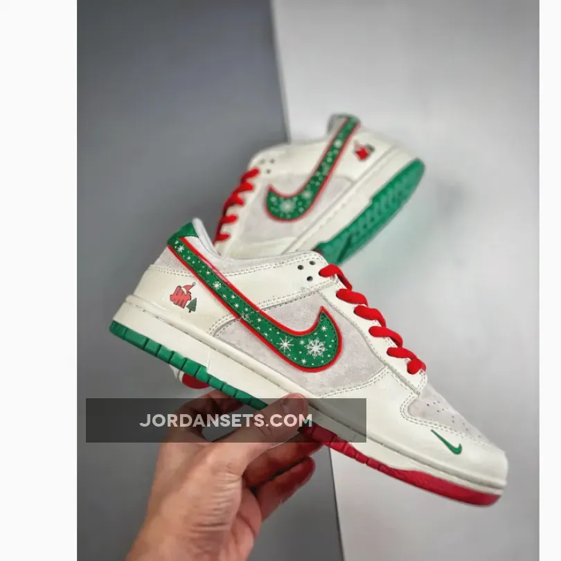 Clean Christmas vibes! Love the classic silhouette meets festive color scheme. Perfect for holiday parties & winter walks. #NikeDunkLow #ChristmasSneakers