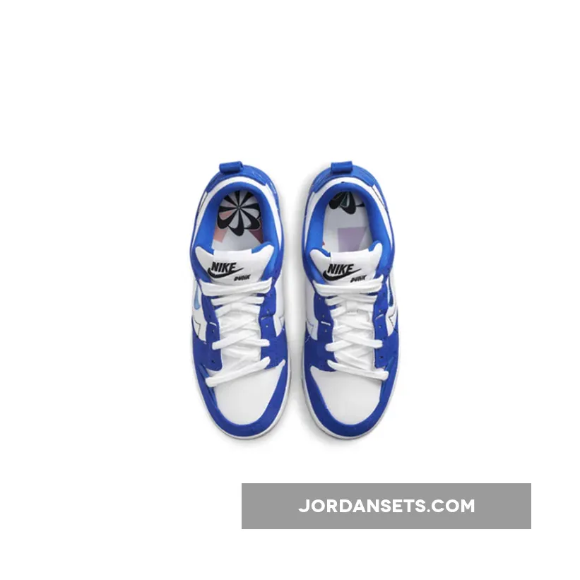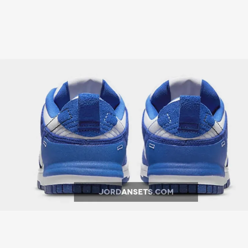 Nike continues its velocity and updates the Nike Dunk Low Disrupt Game Royal look with its all-new Nike Dunk Low Disrupt 2 White Royal, featuring different materials and a mismatched aesthetic.This Dunk Low features a white canvas base on its upper with electric blue overlays in a fuzzy fleece-like material. The side Swooshes on this shoe are deliberately incongruous, with the lateral side featuring an embroidered blue Swoosh atop the outline of another Swoosh below it sewn in black and the medial side showing only the outline of a Swoosh in blue. You’ll know that this shoe is sustainable because of the uneven Pinwheel logos on the insoles.