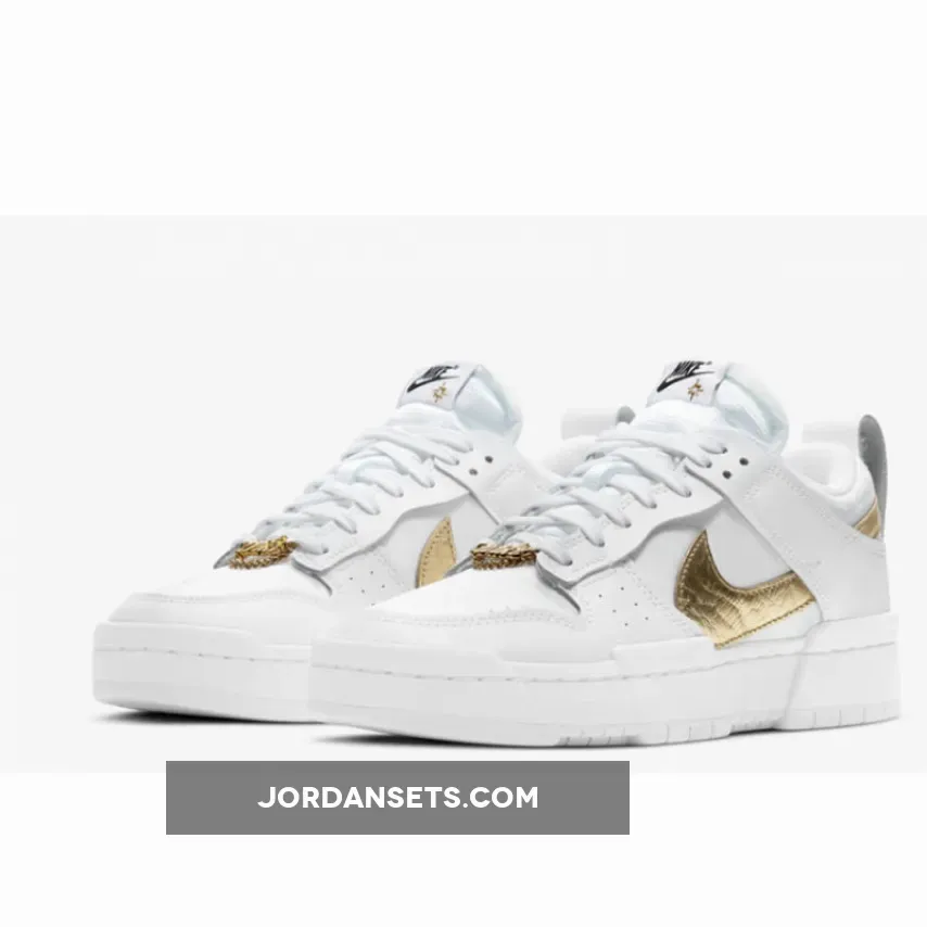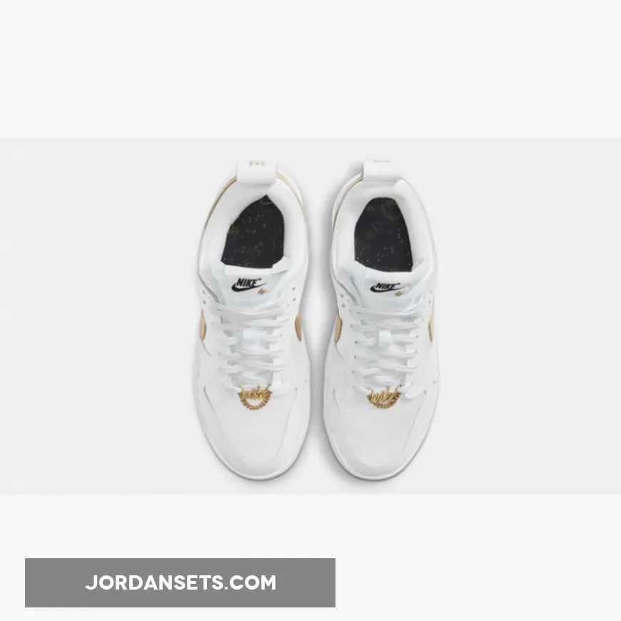 This Dunk Low Disrupt features a simple, yet effective color combination worthy of purchase. This rugged Dunk features a White leather upper accented by “Metallic Gold” detailing on the Swoosh and chain. Atop the tongue, Black lettering colors the Nike branding.