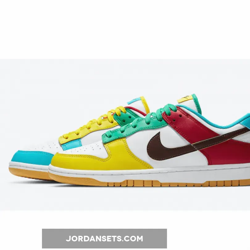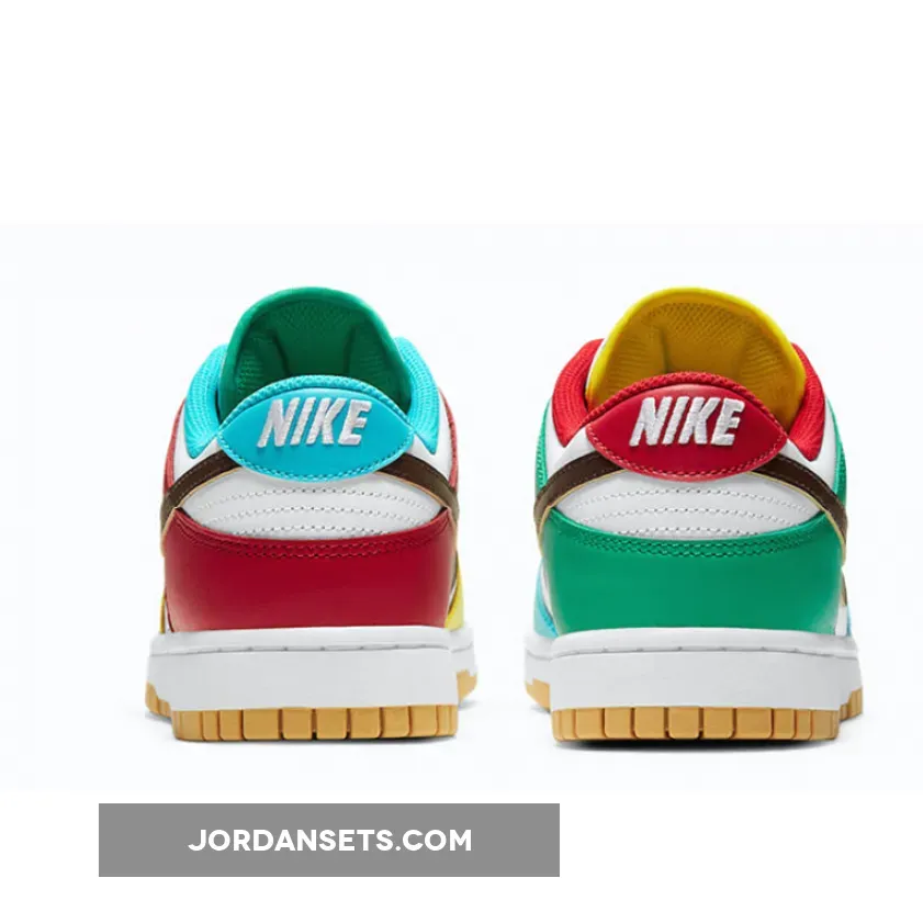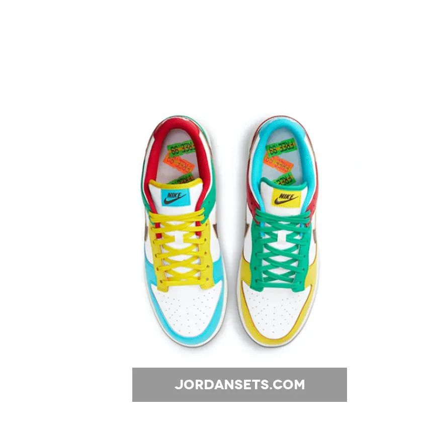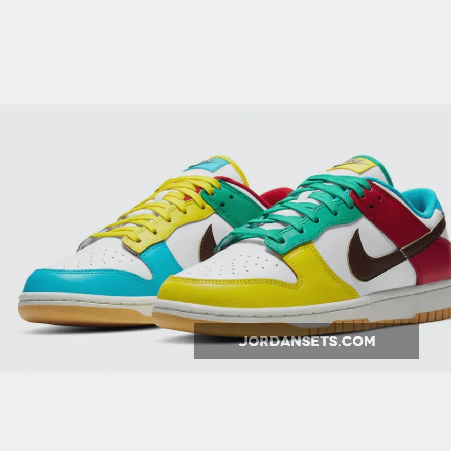 The Nike Dunk Low Free 99 Asymmetric White Multi is one of a whole load of stunning Dunk colourways that we absolutely love. The Nike Dunk shoe was introduced back in 1985 and the hype currently surrounding it is powerful than it has ever been before. Official images of this new Nike Dunk iteration are now live so read on for more.This brand new iteration flaunts a smooth leather construction from heel to toe while boasting a range of different colours arranged asymmetrically on both sides for a mismatched look. Colour-blocked with aqua blue, pine green, buttery yellow, and scarlet red overlays throughout, Nike’s iconic Swoosh logo across the lateral and medial sidewall appears in a dark brown town. Don’t forget to use our Nike Dunk size guidee to know how they fit and feel free to browse the rest of our site for your daily footwear fix.