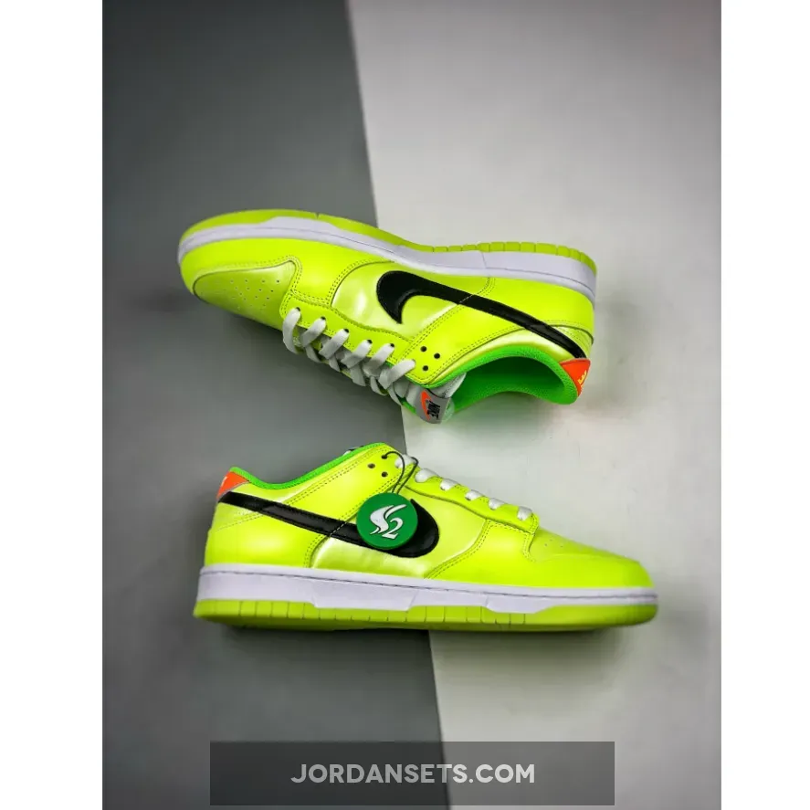 the Nike Dunk Low “Glow in the Dark” features mainly a Volt upper constructed with a shiny base and leather overlays with contrasting black leather Swooshes. Additional detailing comes in the form of tongue tag-tacked white mesh tongues, matching laces, “Venom Green” sockliners, orange “NIKE” heel tabs, and printed insoles. Finishing up the design of the shoe are white midsoles and glow-in-the-dark rubber outsoles.