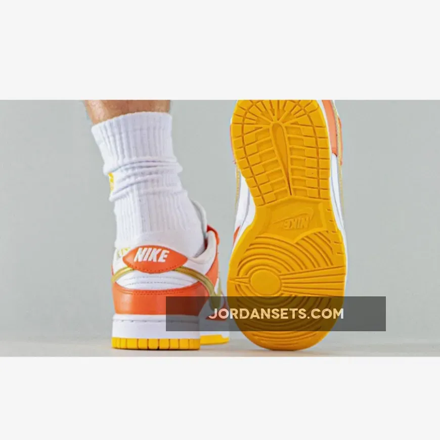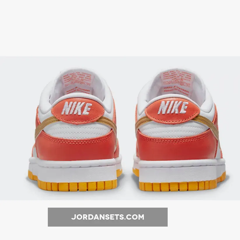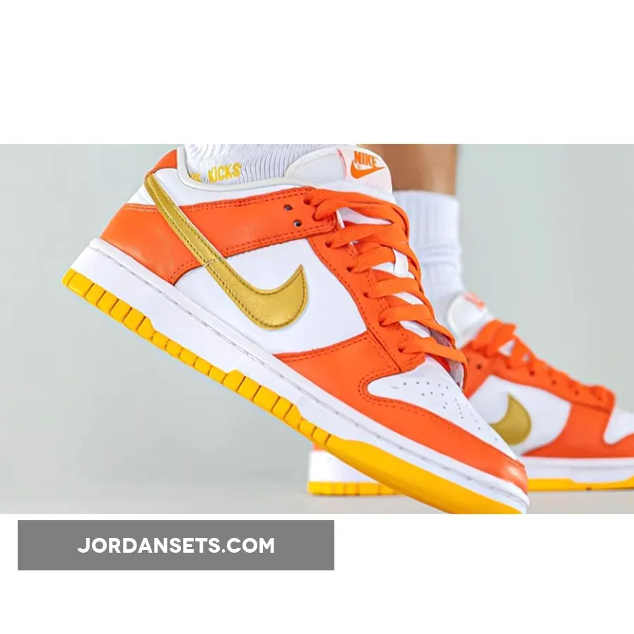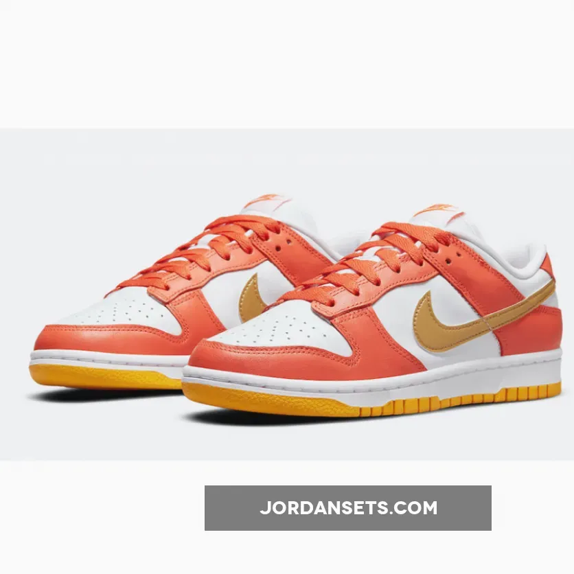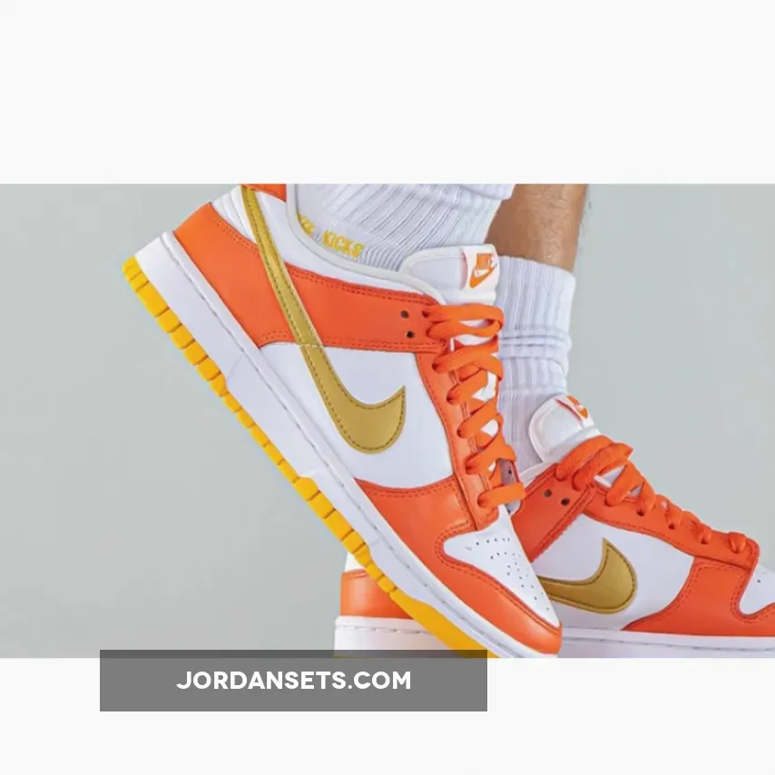 Fresh vibes for summer! Golden Orange Dunks boast bold colorblocking, premium materials, and classic silhouette for a must-have sneaker. Quality’s top-notch, love the metallic Swooshes and color combo. Perfect for sunny days!