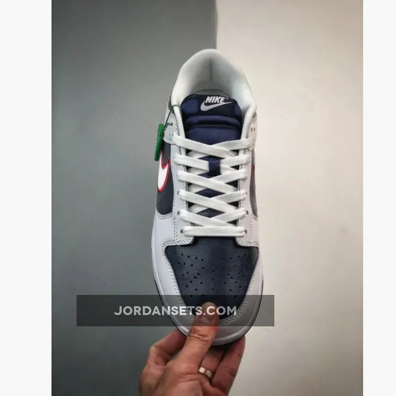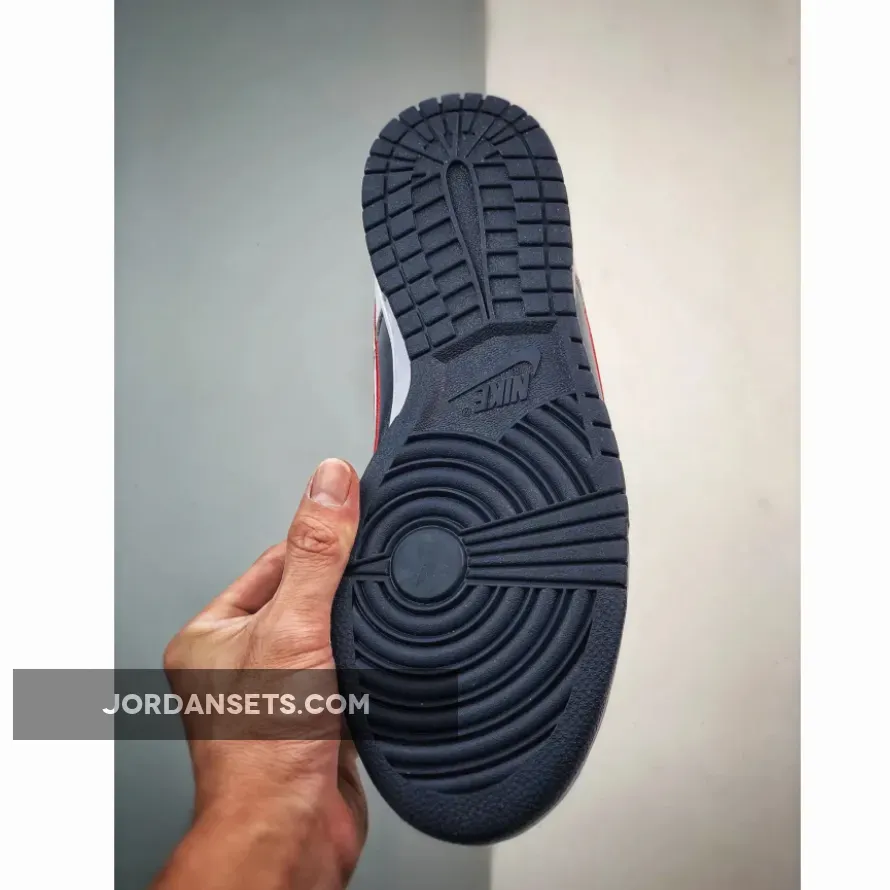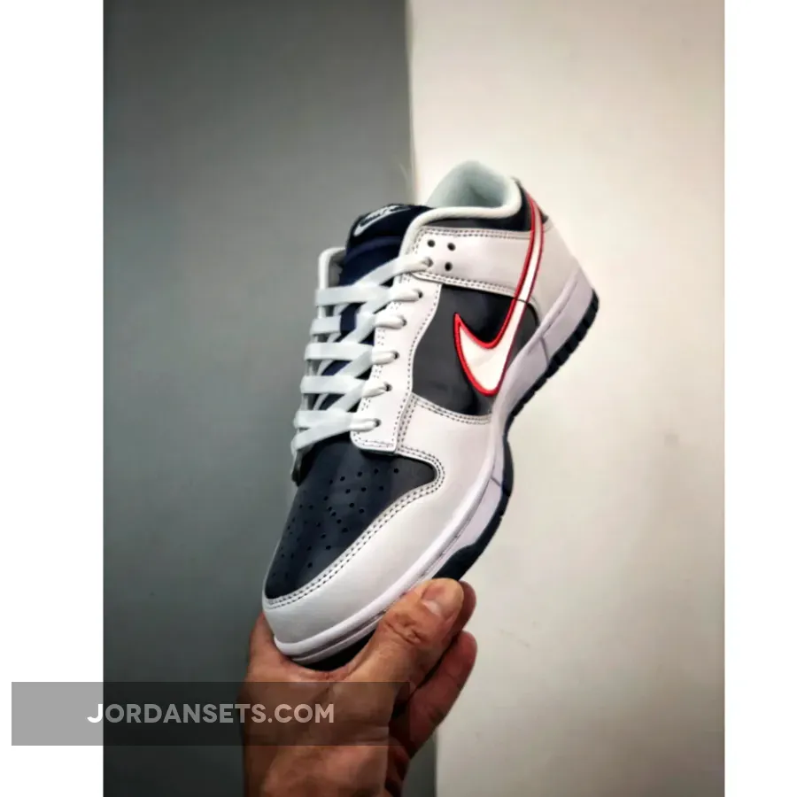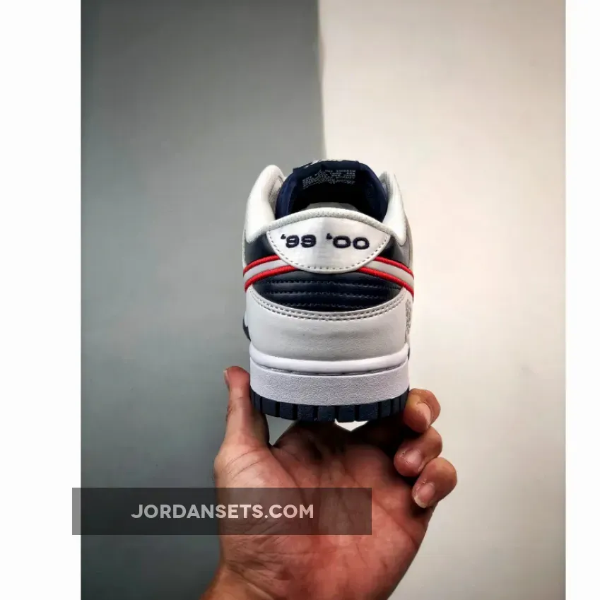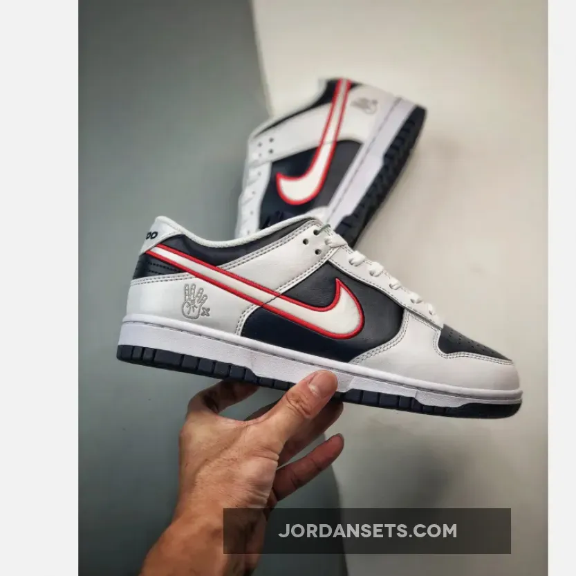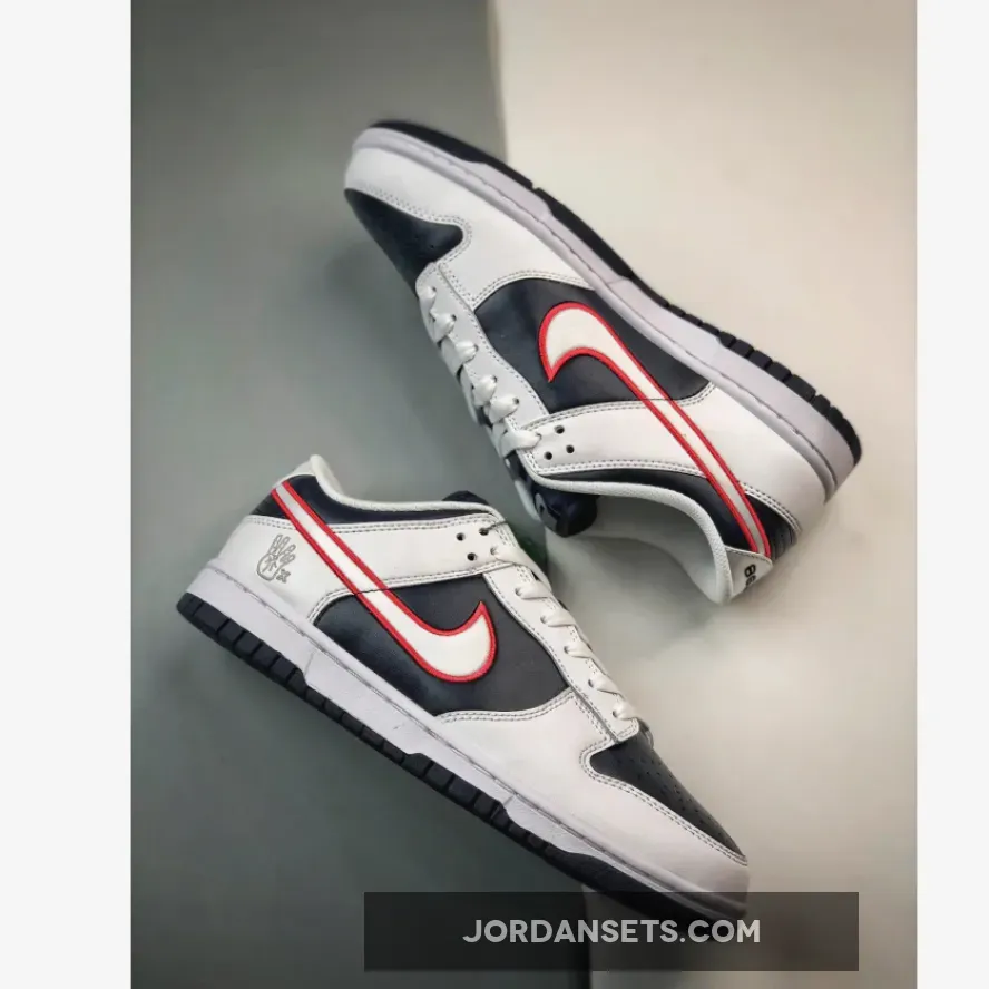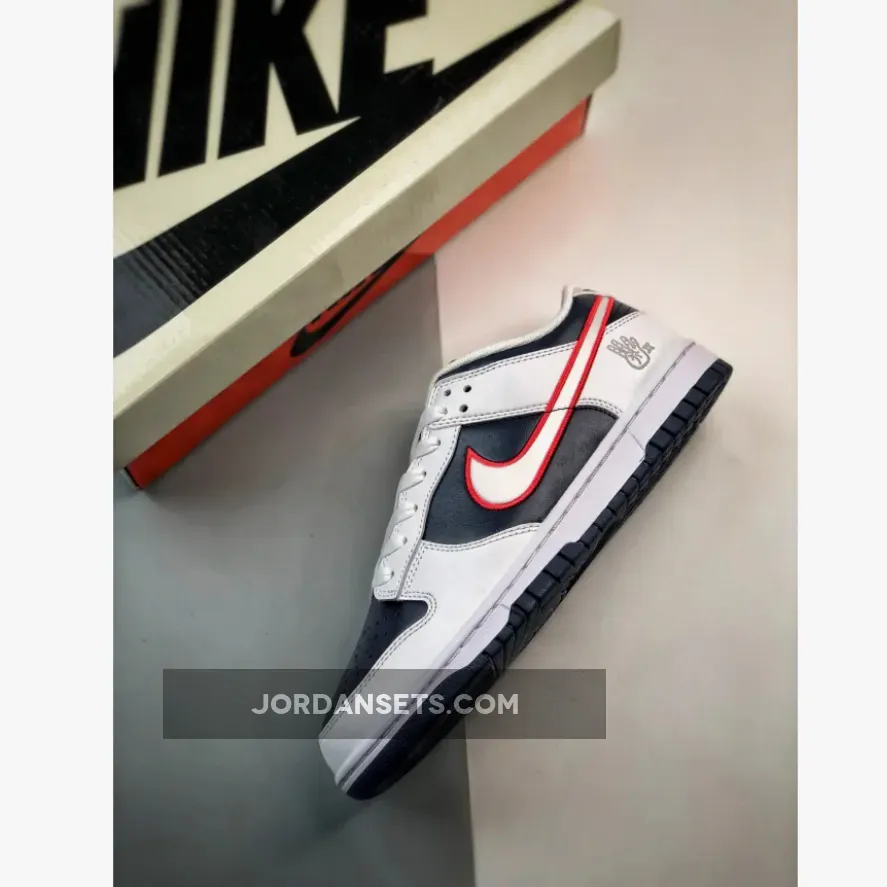 The Nike Dunk Low Premium Houston Comets “4-Peat” is a dynamic arrangement of white, navy, and red, reflecting the Comets’ colors. The white leather inserts on the mudguard, eyestays, as well as heel contrast well with the blue parts on the toe box, quarter panel, and collar.