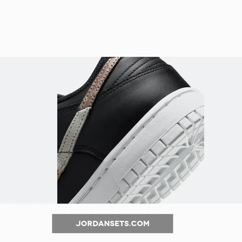 The Nike Dunk Low Leopard Black makes a bold and original debut in its animal print series, with all the prints contained in the Swoosh alone. This pair has a smooth and perforated all-black leather upper and sock liner, making the leopard print and light grey snakeskin in suede stand out. The Swoosh continues onto the back, towards the heel tab, in a cracked bronze finish. You’ll also find the classic Nike branding on the tongue and heel notch, completing the look. These black dunks can go with anything. The leopard and snake prints will also match any neutrals. Hunt for more Nike Dunk Lows in the animal print series on Our Store Supplier app. Keep it close and never miss an update on the latest Nike sneakers.