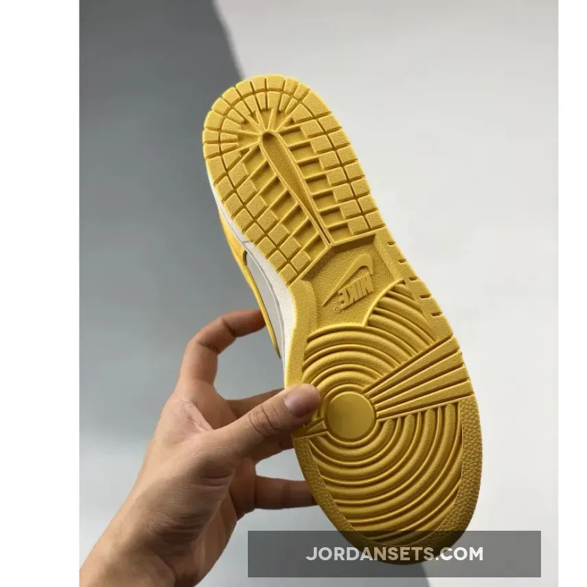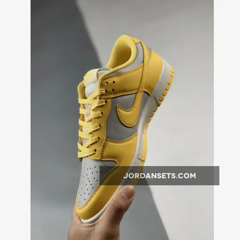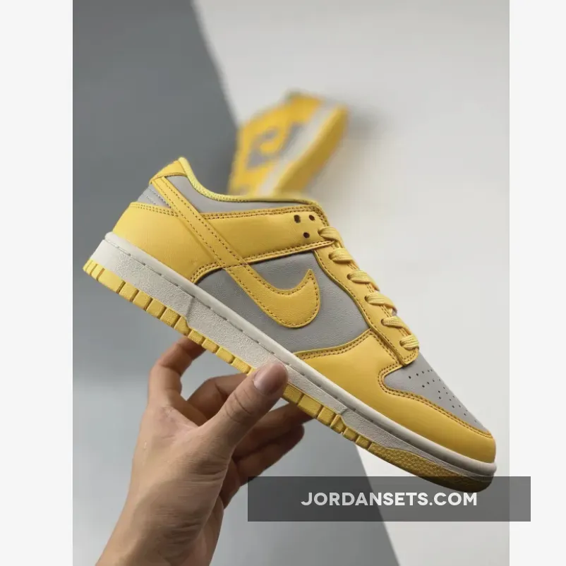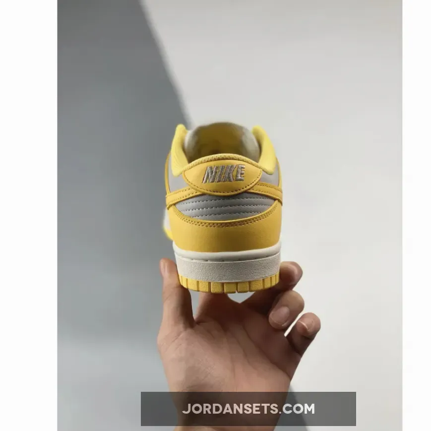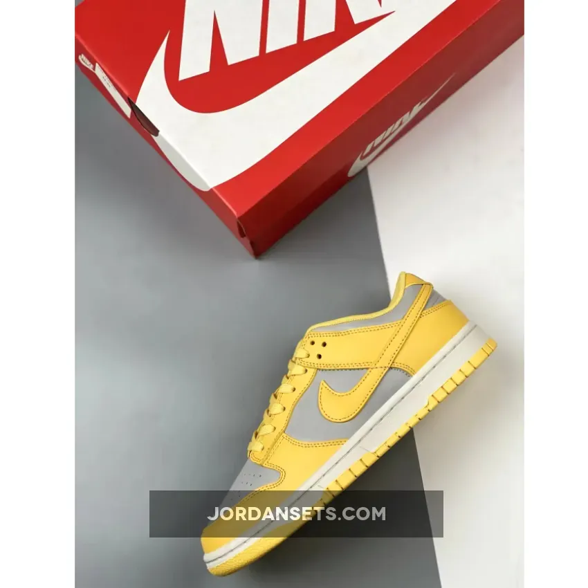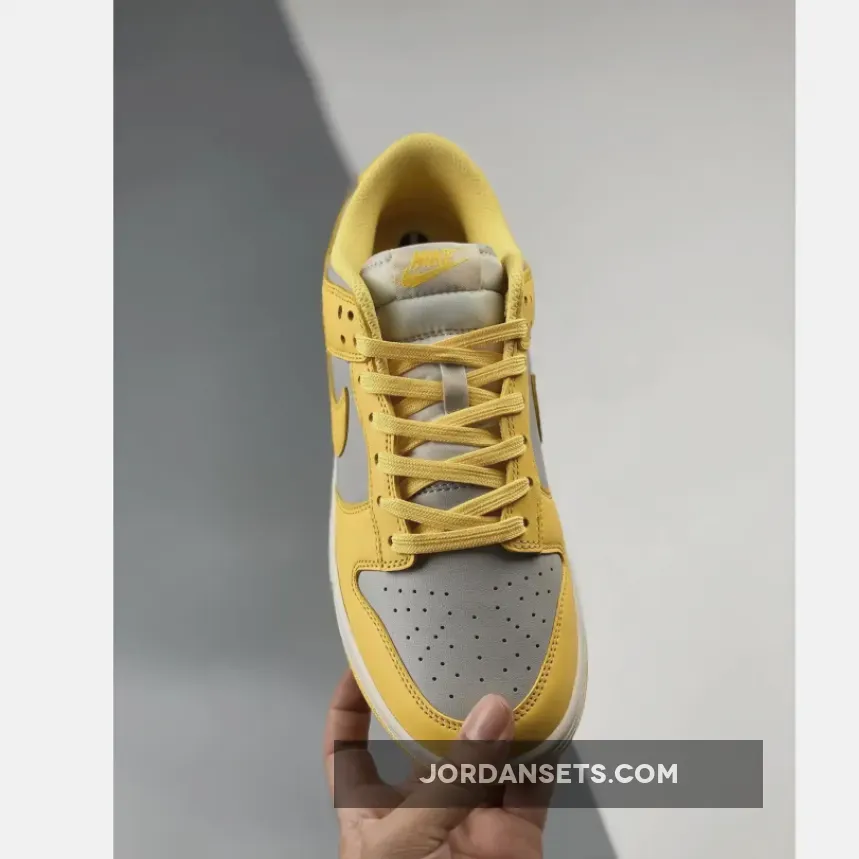 Covered in an official color scheme of Light Bone, Citron Pulse, and Sail, this Nike Dunk Low features a full leather build on the upper with a light grey seen on the base and the highlight Citron Pulse noted on the overlays, Swooshes, and inner liners. In complement, the midsole below features “Sail” through its sidewalls, while the overlays, laces, and outsole opt for the titular yellow.