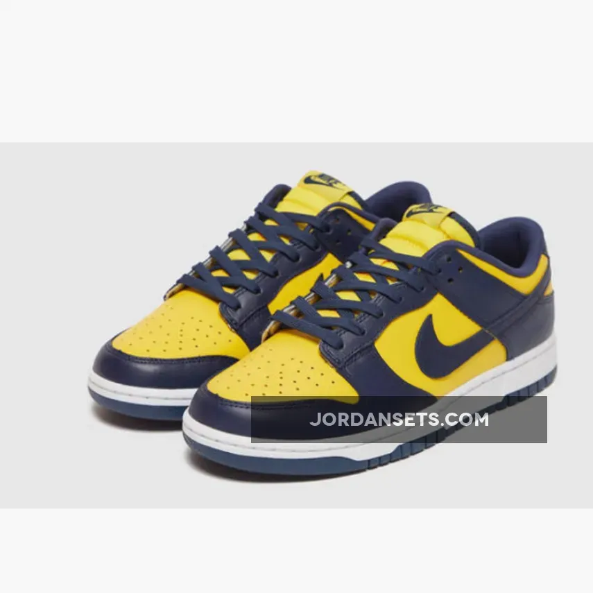 The Nike Dunk Michigan is one of several classic Dunk colourways that many sneakerheads love. Since 2019, the Dunk has seen a huge resurgence due to several high-profile collaborations with the likes of Virgil Abloh and Travis Scott, and as long-term sneakerheads, we love to see it.The uppers are crafted from premium quality leathers throughout, showcasing the iconic panelled design and eye-catching yellow and navy colour blocking. Nike Swoosh branding adorns both the lateral and medial sides, while additional branding remains at the tongue and heel alongside other classic details such as the perforated toe box. If like us, you’re a big fan of Dunks, then these are going straight onto the cop list.If you are looking to get your hands on the Nike Dunk Low Retro Varsity Maize Navy, you need to make sure you know how they fit, so use our Dunk size guide for the best advice from Our Store Supplier’s in-house footwear experts.