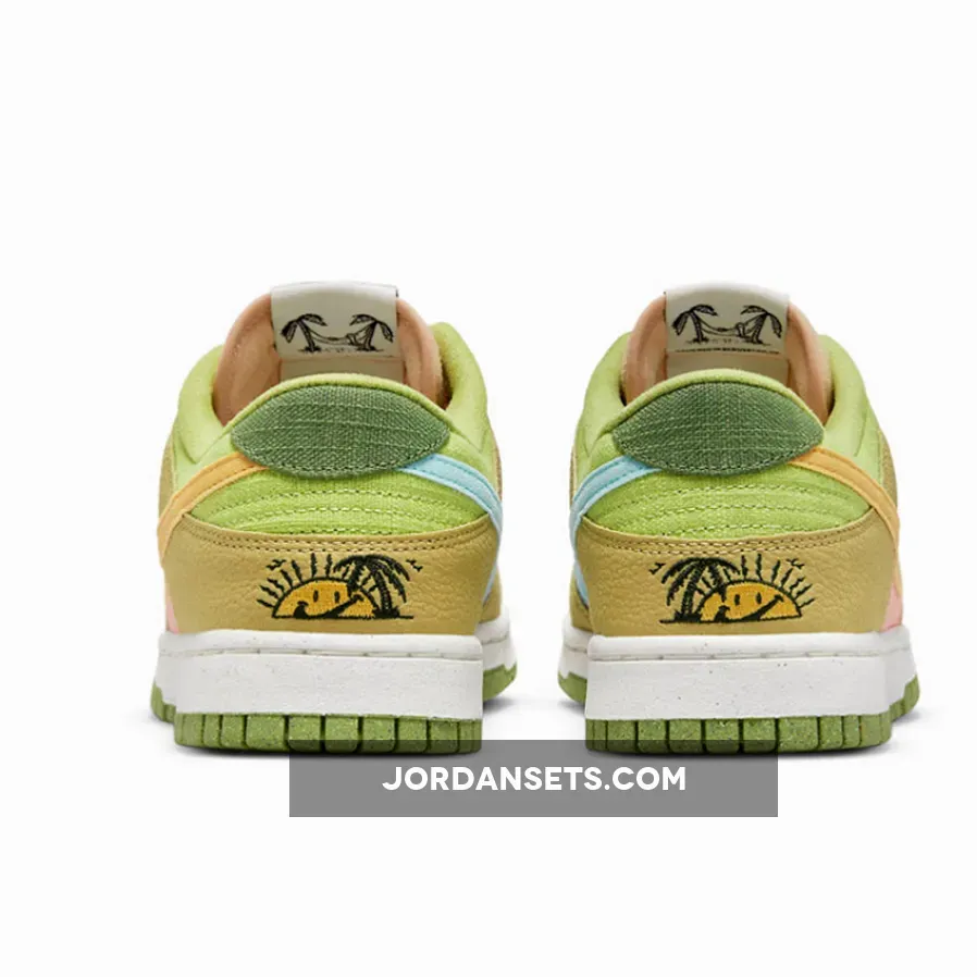 Fresh vibes meet classic style in the Nike Dunk Low Sun Club. Vibrant hues and playful details make this pair perfect for summer. The canvas upper and tumbled leather overlays offer a unique mix of textures, while the Grind technology in the outsole promises comfort and style. A must-have for any Dunk lover!